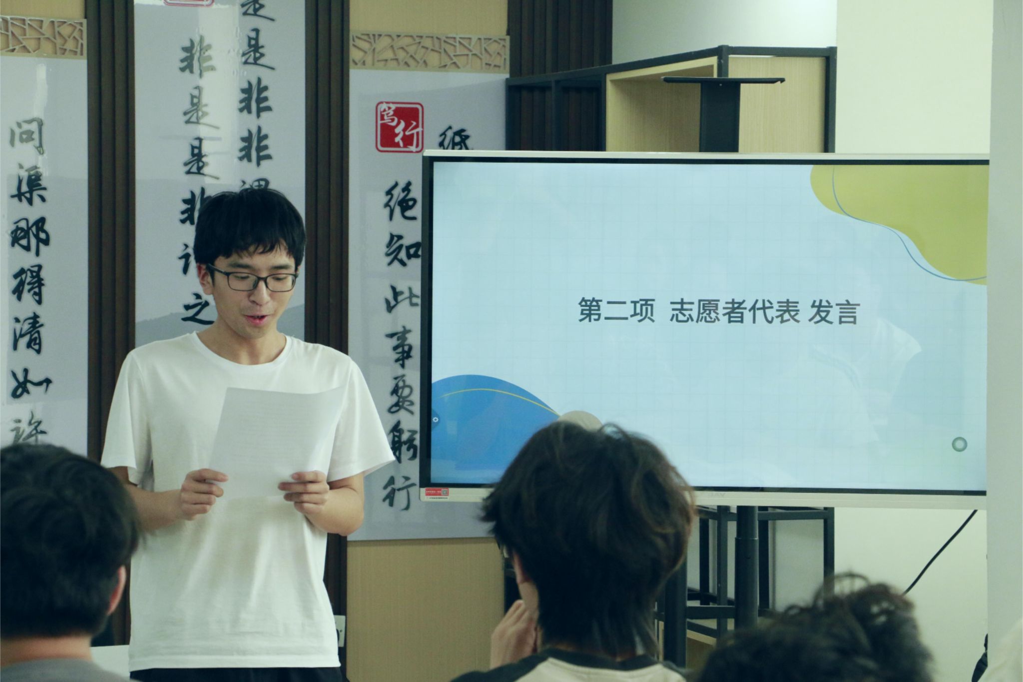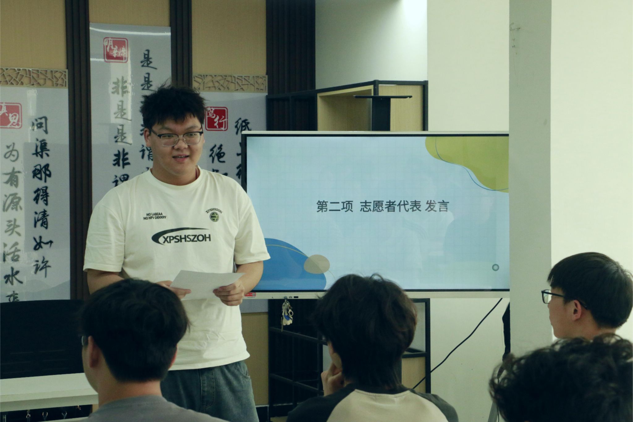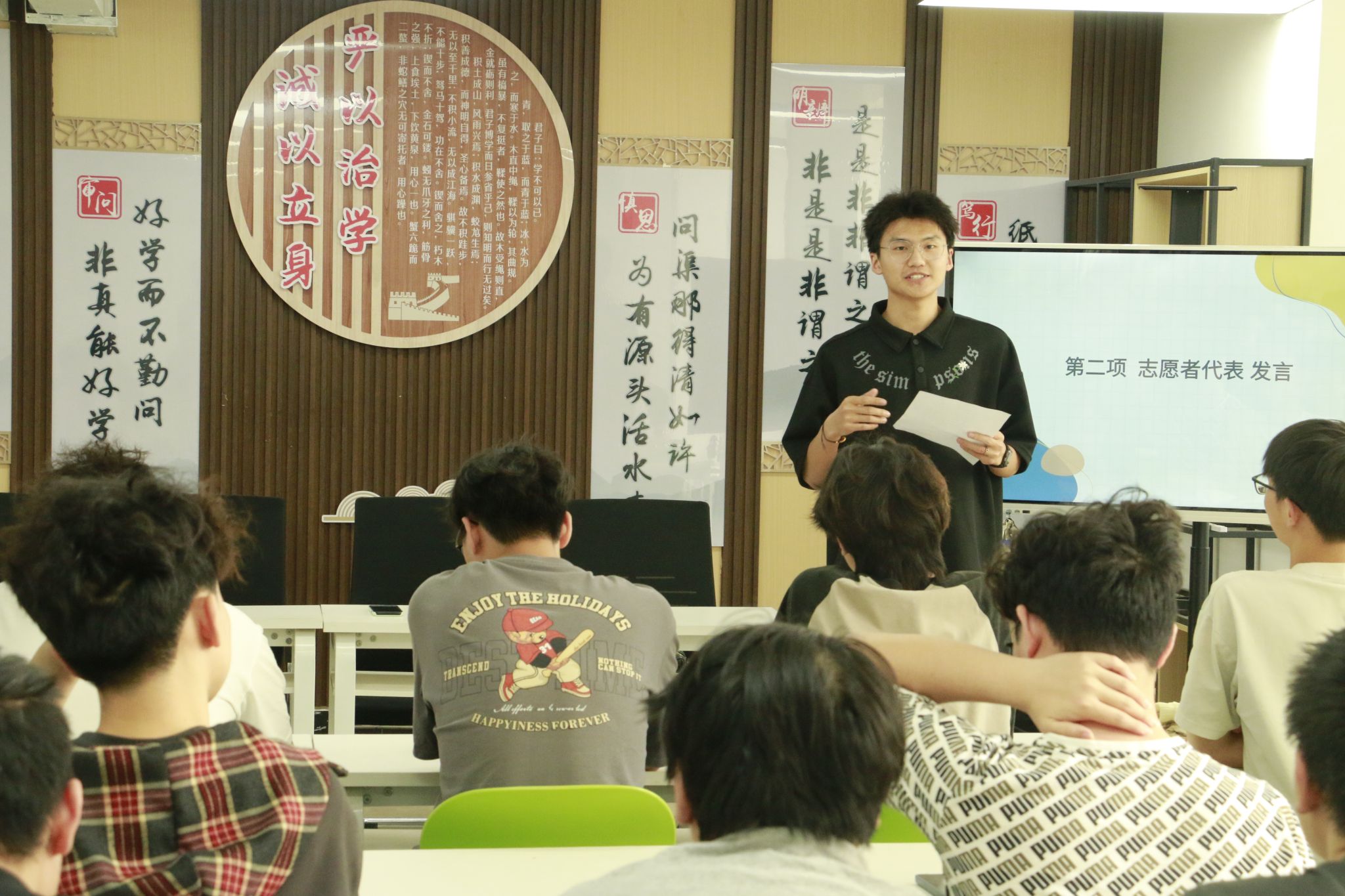 23141班学生代表苏梦鑫作为帮扶志愿者代表发言,分享了学习方面的经验,他表示作为一名帮扶志愿者,自己将采取主动态度,加强沟通,共同制定精准帮扶计划,定期了解被帮扶学生学习进展,加强督促检查,及时发现并解决问题,共学共进。
