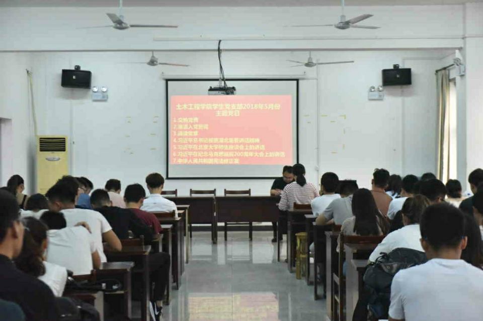 本次会议由我院学生党支部书记张东主持。首先,全体党员自觉缴纳党费、重温入党誓词、集体诵读党章,随后张东详细的讲解了习近平总书记视察湖北重要讲话精神、习近平在北京大学师生座谈会上的讲话以及习近平在纪念马克思诞辰200周年大会上的讲话等系列讲话精神和中国人民共和国宪法修正案,最后全体党员观看了警示教育片。
