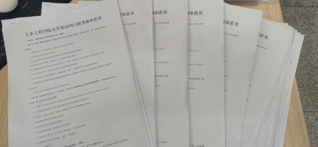 活动以“端正考风,严肃考纪,土木人不违规”为主题,号召全院学生诚信应考,诚信做人,活动中即将参与考试的同学认真学习相关规章制度,并在诚信应考承诺书上签字,学院将各班承诺书进行回收存档。