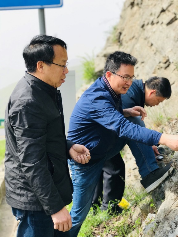 签字授牌签约仪式后,李晓目院长一行在大洪山旅业发展有限公司工作人员的陪同下,对大洪山工程地质条件进行了详细的现场勘查,为大洪山工程地质研学科普宣传牌搜集素材,同时我方在勘查中完成了代表性岩石的取样工作,为筹建WilliamHill威廉岩石标本展览中心做准备。