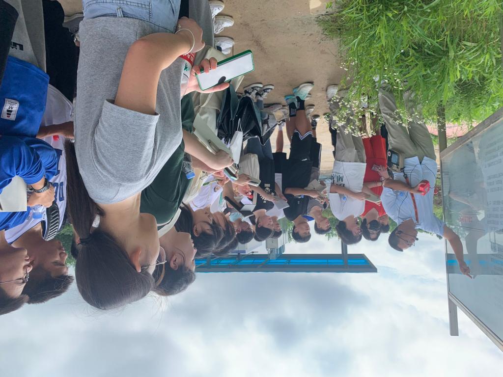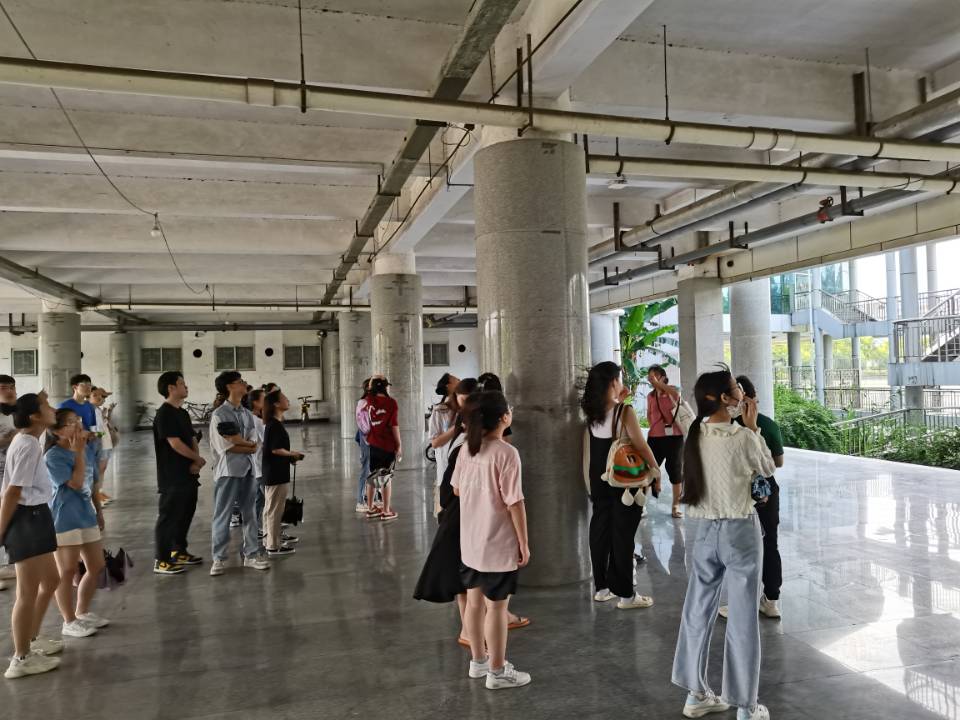 在校园,同学们参观了建好的建筑与桥梁,体育馆、拱桥、天工楼、图书馆、格物楼、体育看台、三联体、美术楼工地都留下了同学们认知的身影。