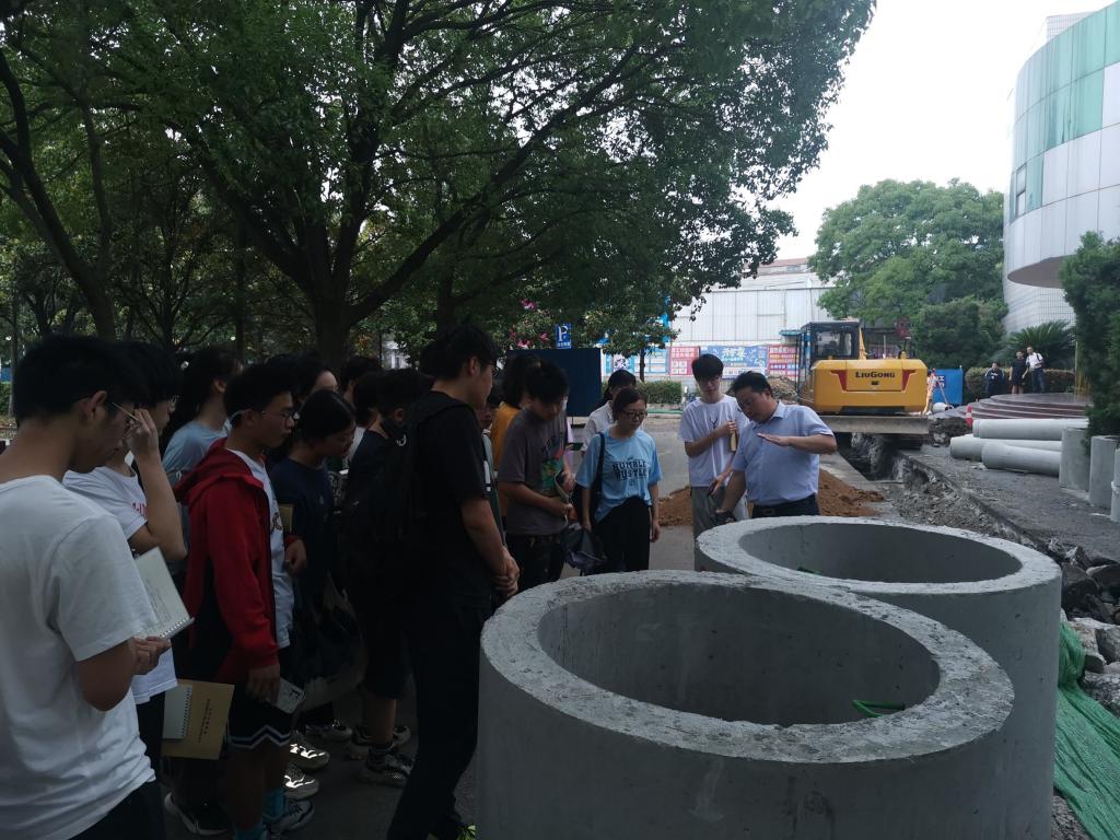 在施工现场、污水处理厂,同学们围着技术员问个不停,了解各种工艺流程,为将来专业课程的学习打下基础。