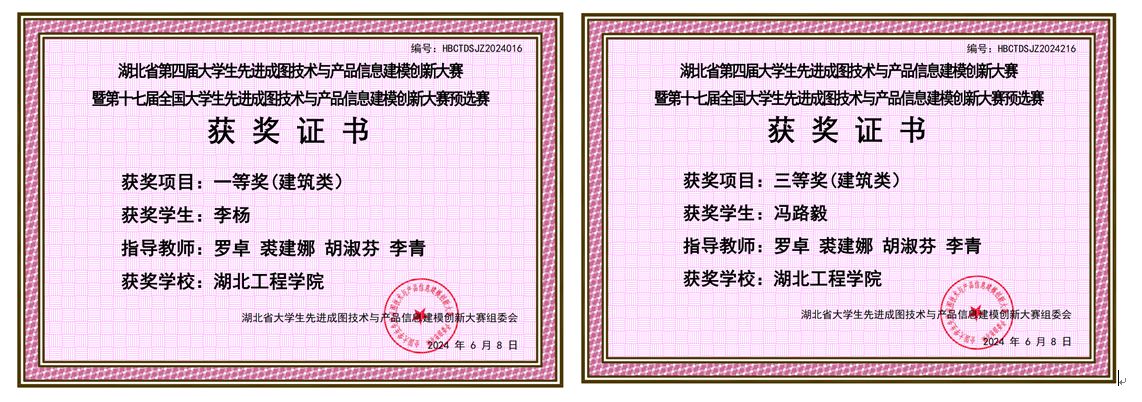 6 月 8 日,湖北省第四届大学生先进成图技术与产品信息建模创新大赛暨第十七届全国大学生先进成图技术与产品信息建模创新大赛预选赛落下帷幕,WilliamHill威廉罗卓、裘建娜、胡淑芬、李青四位老师指导,来自土木工程、工程造价专业共8名学生组队,在此次大赛中分别荣获个人一等奖1项和三等1项,3人进入国赛。