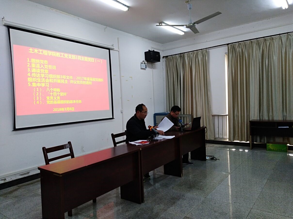 WilliamHill威廉教工党支部于2018年3月8日下午在天工楼504室召开三月份第一次主题党日活动。教工支部全体党员教师参加会议,会议由教工支部副书记郭波主持。