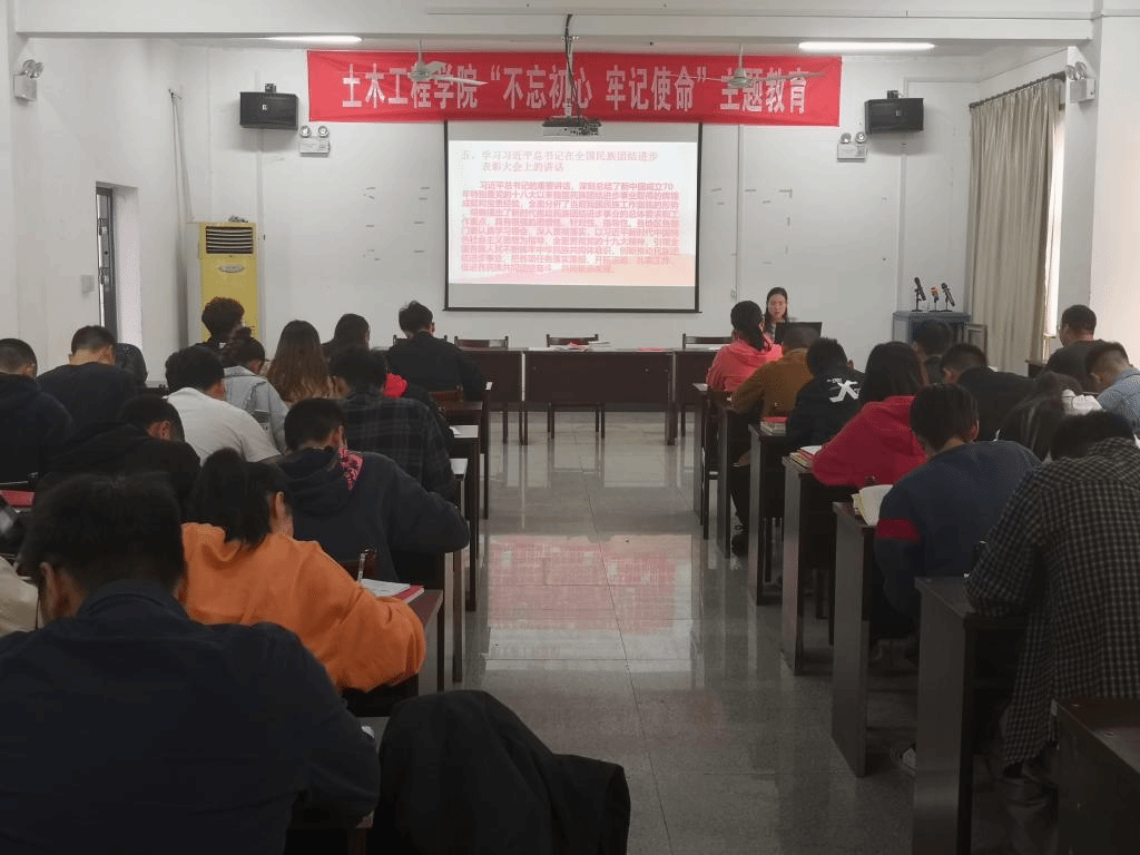 按照主题党日的要求,依次进行交纳党费、重温入党誓词、集体诵读党章。其后,叶婵老师又向全体学生党员传达了学校“不忘初心,牢记使命”主题教育中对照党章党规找差距的工作方案并带领大家学习了习近平总书记在庆祝中华人民共和国成立70周年大会上的讲话精神、习近平总书记在全国民族团结进步表彰大会上的讲话、习近平总书记重要文章《推进党的建设新的伟大工程要一以贯之》和《习近平新时代中国特色社会主义思想三十讲(第十一讲)》;然后开展爱国主义教育-观看党史第一篇《开天辟地》;