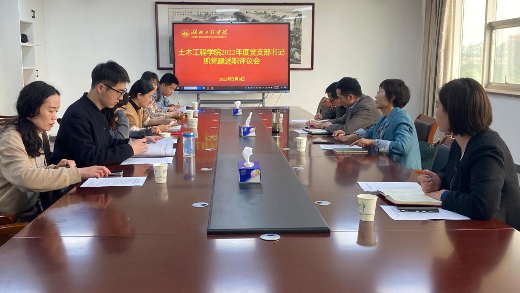 述职评议采取基层党支部书记书面述职报告和现场PPT述职评议相结合的形式进行。述职评议会上,土木工程系党支部书记吴静、环境工程系党支部书记赵海华、工程造价系党支部书记夏蕊芳、学生第一党支部书记洪迪等4名同志作为代表,分别对2022年度基层党建工作履职情况、存在的问题、下一步努力的方向进行现场述职,其他2名同志进行书面述职。