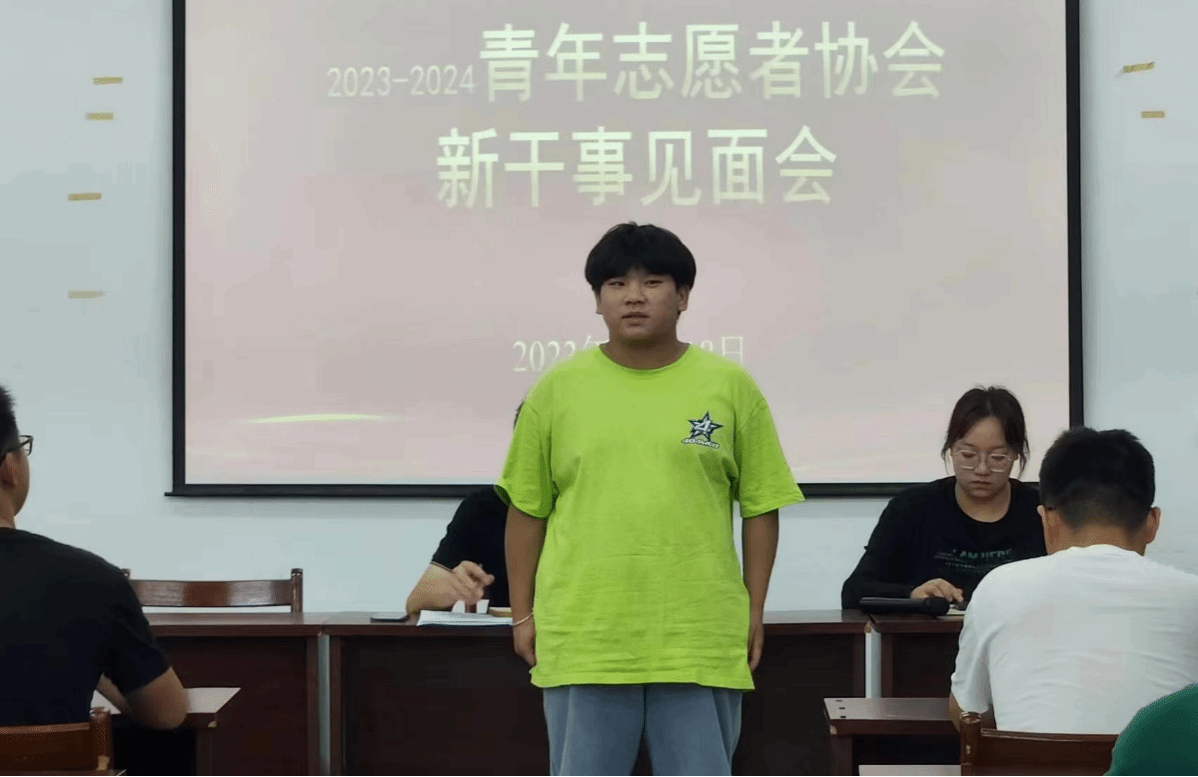 会议伊始,青协会长龙绪方表达了对新成员的欢迎,表示新干事的加入为我们青协这个大家庭注入了新鲜血液,增添了新的活力。同时,会长、副会长代表也简要介绍了部门工作概况和对干事们未来工作的要求。接着,全体青协成员进行宣誓,通过宣誓仪式增强了全体青协成员的使命感和责任感。宣誓结束后,新干事代表朱芷萱发言,她表达了对加入院青协组织的期待,介绍了高中时期学生干部经历,并表明自己加入青年志愿者协会后,将用热情和激情争做优秀志愿者、优秀干事的决心。