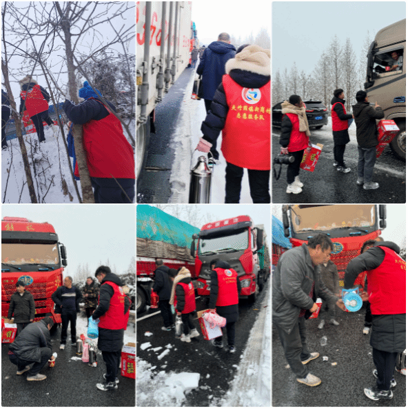实践内容:2024年2月5日,冻雨暴雪极端恶劣天气席卷湖北大地,高速堵车,大雪封路,许多踏上返乡的车辆被困高速公路,湖北省荆州市公安县夹竹园镇新岗村自发组织党员干部与在乡大学生,给被困车辆送去热水与食品物资补给。得知消息后,我第一时间报名参加这支暖心突击队,和大伙一起冒雪穿过杂草丛林和陡坡,步行至两广高速新岗段,为滞留司机和乘客送去温暖与祝福。虽然天气严寒,手脚冰冷,但当听到一位长途卡车司机大叔落泪连道感谢的的那一刻,我内心的一股热流涌上心头,要知道湖北有难的时候都是八方支援,这都是我们应该做的。