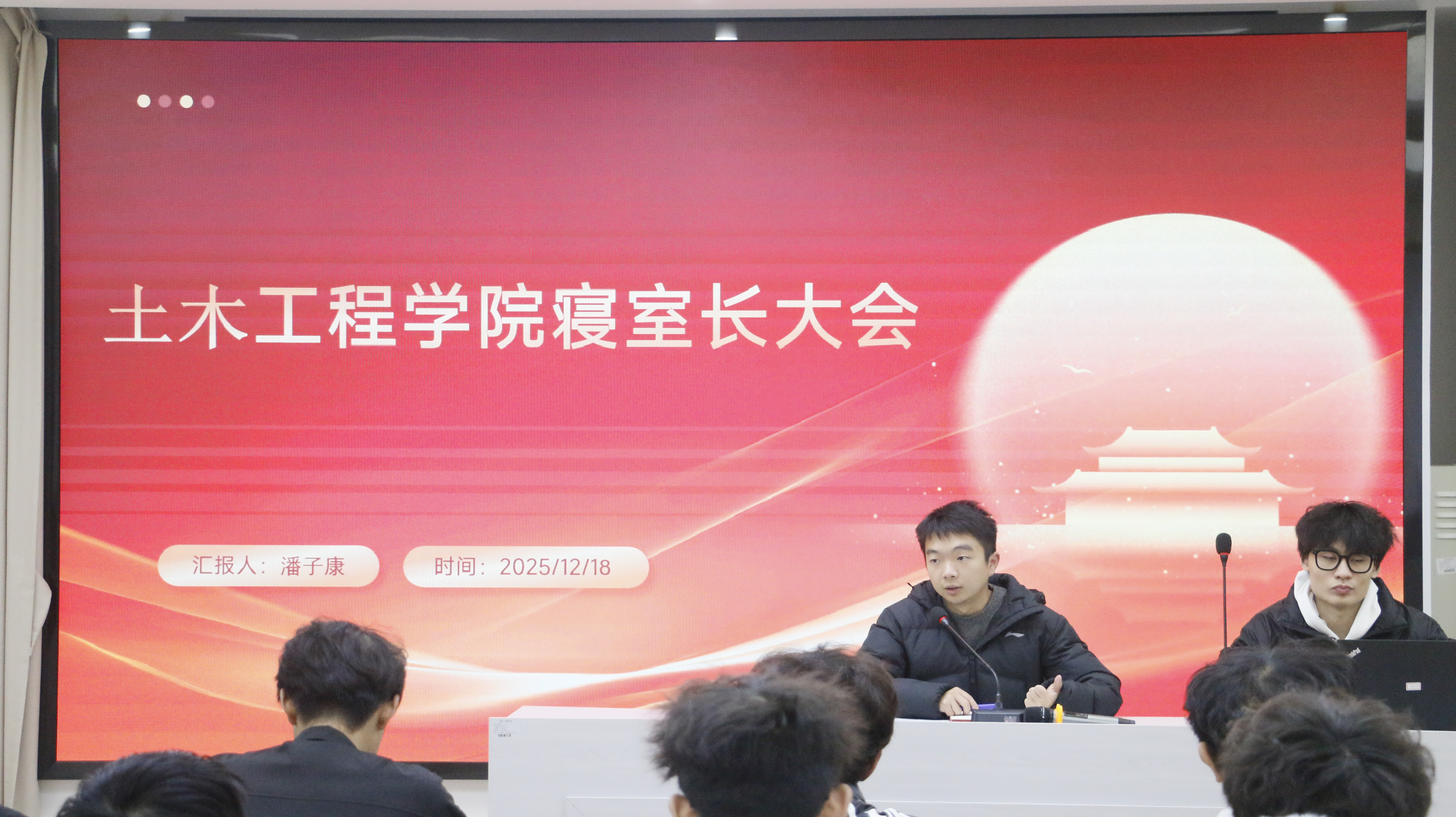 会议伊始,学院寝管会潘子康同学结合近期宿舍卫生与安全检查的实际情况,详细梳理并讲解了宿舍内务整理的“高频扣分陷阱”,提醒各位寝室长关注细节,带领室友共同维护整洁环境。同时,他详细介绍了宿舍区突发事件的处置流程,强调“第一时间报告辅导员”的基本原则,确保应急响应迅速有效。此外,他还就日常设施报修渠道与注意事项进行说明,为寝室长提供了实用的管理方法。