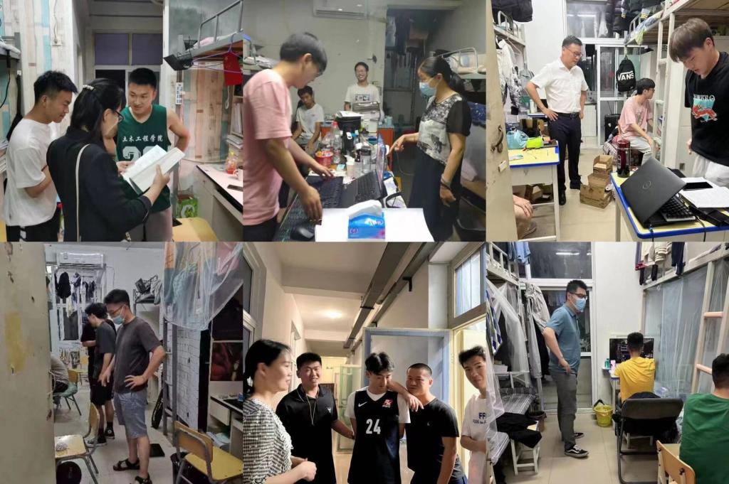 为落实“下基层、察民情、解民忧、暖民心”实践活动的相关部署要求,全面深入细致地了解学生住宿情况,5月31日晚,学院领导带队,班主任、辅导员组成2个查寝小组,分别深入本校区、同大校区学生宿舍,看望学生,了解学生宿舍居住情况,在校学习情况和防疫防护情况,为学生排忧解难。