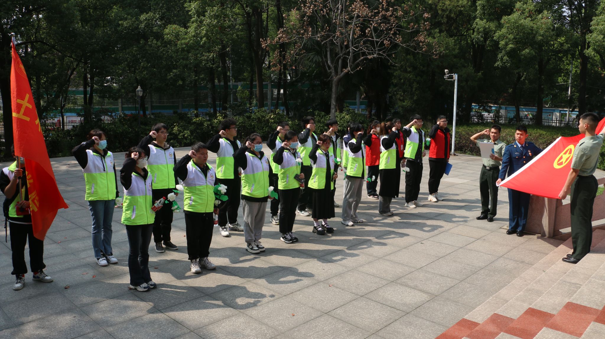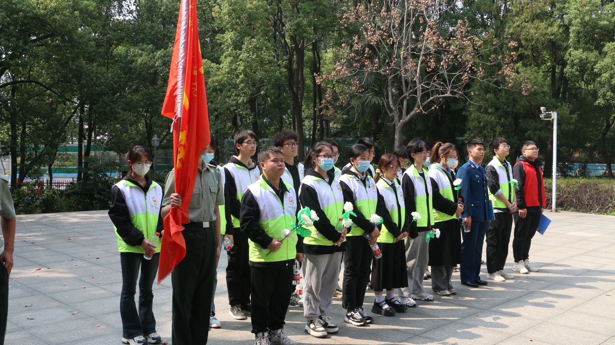 活动开始,同学们首先唱响国歌表达对革命先烈的敬意。接着,全体同学面向纪念碑默哀一分钟,深切缅怀革命先烈丰功伟绩,寄托哀思。随后,退伍军人万书杰同学作为学生代表发言,学生代表龚强港带领着大家对着团旗庄重宣誓,铮铮誓言振奋人心。最后,同学们绕行烈士纪念碑一周,瞻仰烈士纪念碑,并献上自己亲手制作的小白菊,表达对革命先烈的敬仰与怀念之情。