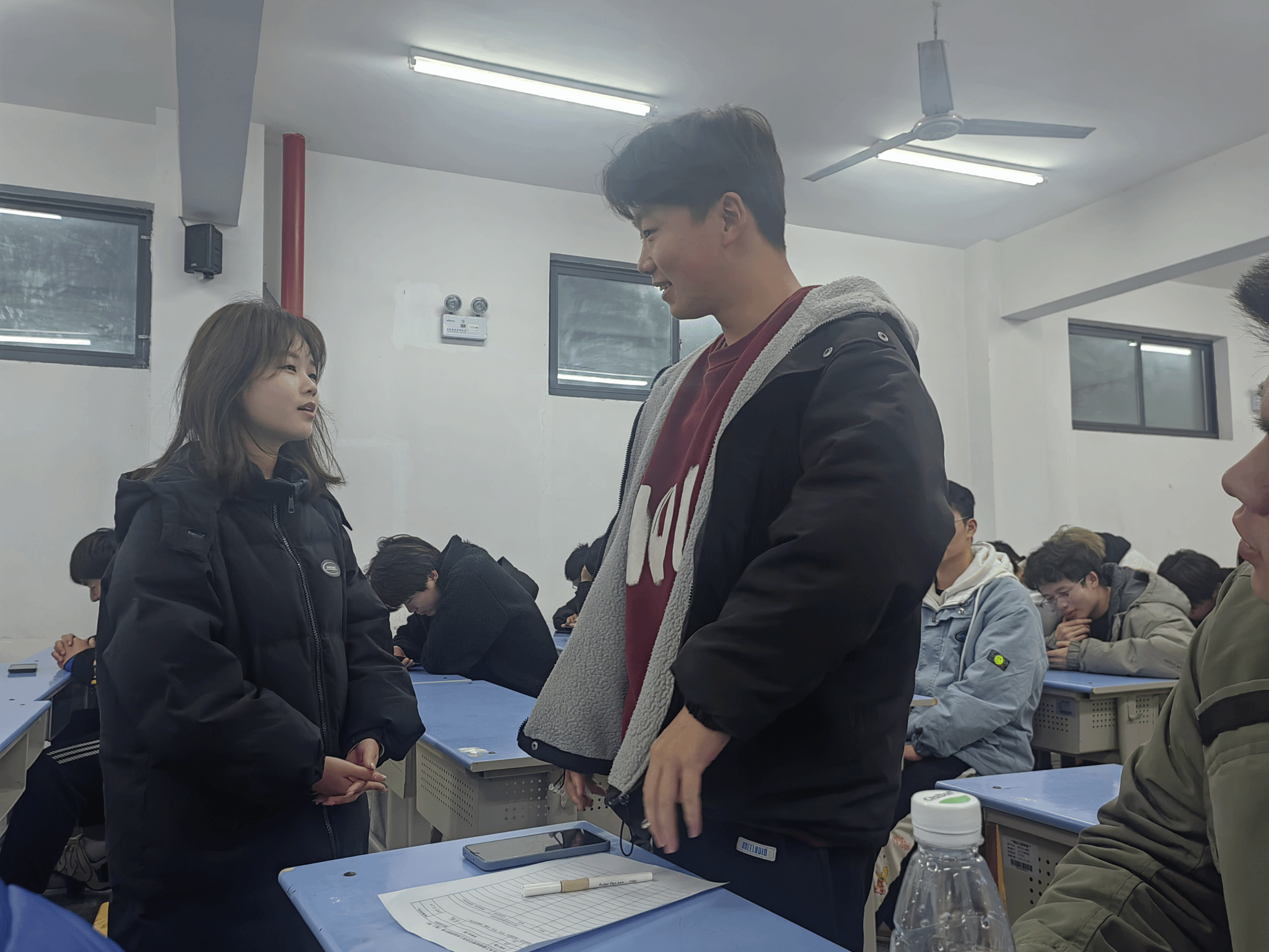 本次心理主题班会由各班心理委员主持,在“击鼓传花”游戏过程中,大家积极参与,真诚的将自己的祝福送给班上的同学;在“杯子里的水”的环节,大家以“倒水”的方式来回顾自己上学期的进步。两个热身活动结束之后,各班心理委员又给大家介绍了三种情绪调节的方式,包括:(1)主动接纳当下的情绪、(2)合理调整认知、(3)回归积极行动。同学们刚刚从寒假放松的状态回到学校,会因为离开熟悉环境而产生焦虑感,而以上的三种方式让同学们更快的进入且适应学校当前的环境。