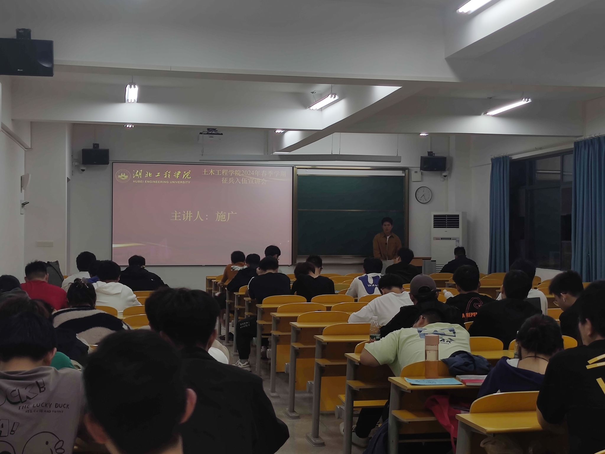 为深入贯彻落实征兵工作有关精神,鼓励和引导大学生积极应征入伍,激发学生报效祖国,献身国防的热情。4月16日晚,我院在三园区313教室召开2024年春季学期征兵入伍动员宣讲会。学院辅导员、2023级学生和部分其他年级学生代表参加,宣讲会由征兵辅导员陈路主持。