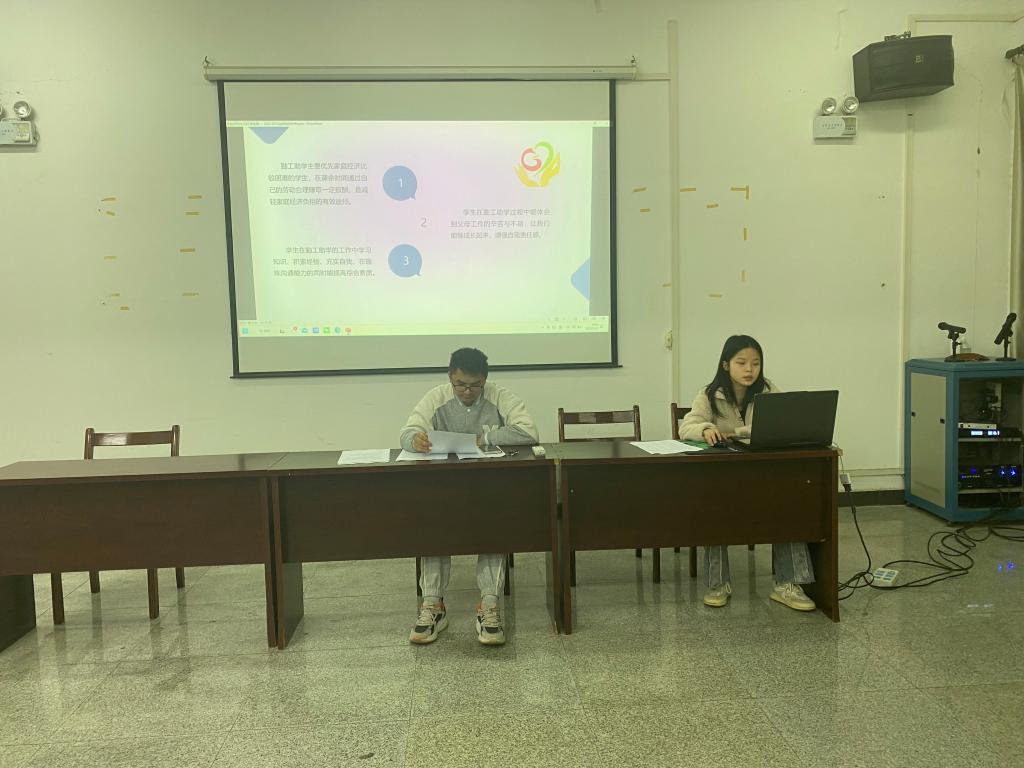 培训会开始,帅丽莎同学为大家讲述了勤工助学的意义,我院勤工助学岗位的选拔对象优先家庭经济困难学生,让同学们利用课余时间,通过自己的劳动获得一定的报酬以此减轻家庭的经济负担。同时,在这个过程中学习知识、积累经验、充实自我,锻炼沟通能力,提高综合素质,体验到父母工作的辛苦和不易。