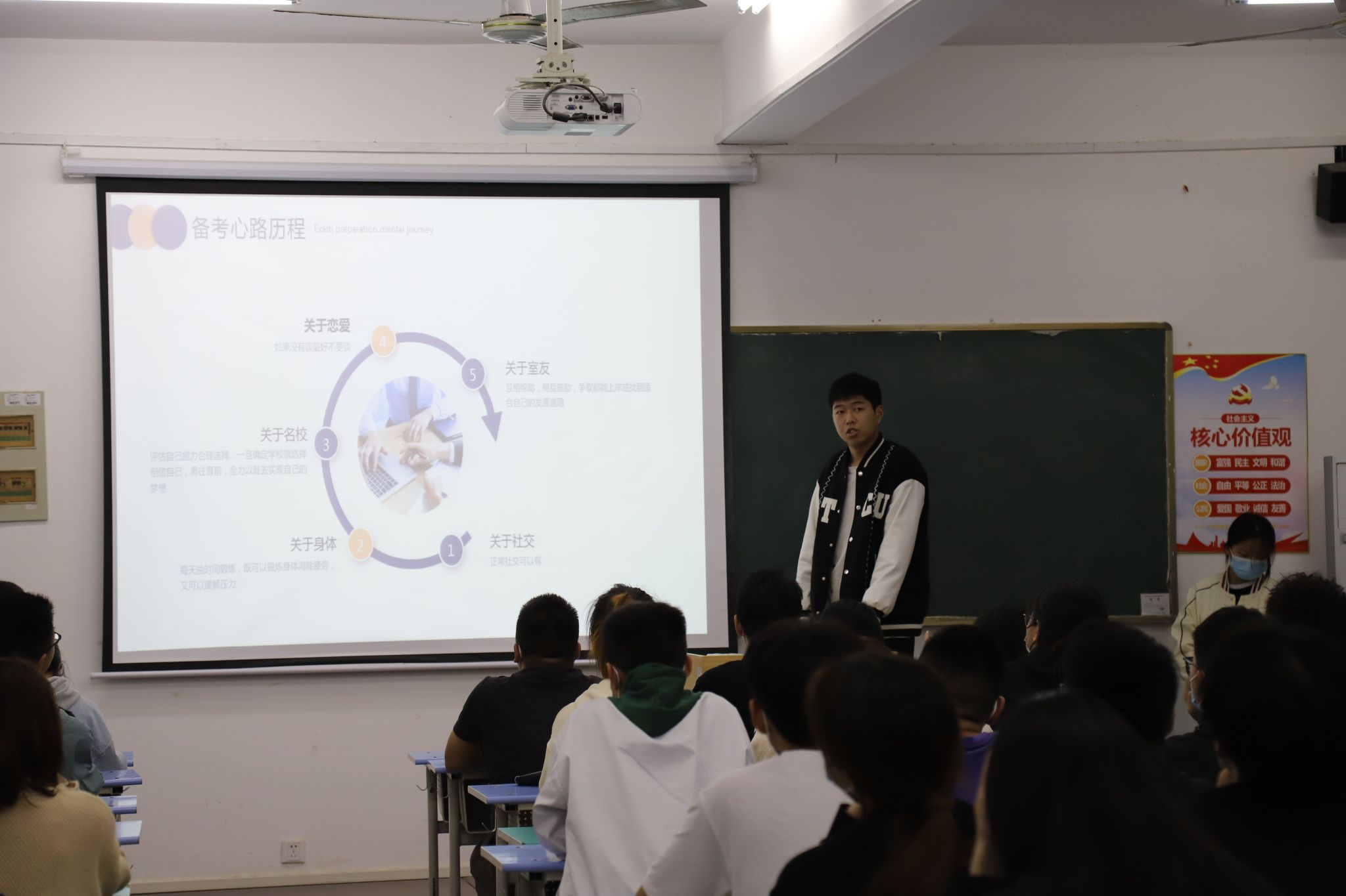 19141班的刘泽同学在今年研究生考试中成功上岸河南理工大学,他和同学们分享了他的备考历程和经验以及学校的选取和相关学习资料的获取等。他希望大一大二的同学们能够趁着现在的时间打牢专业基础,规划好自己的目标。最后他也真挚地祝福同学们能考上心仪的学校。
