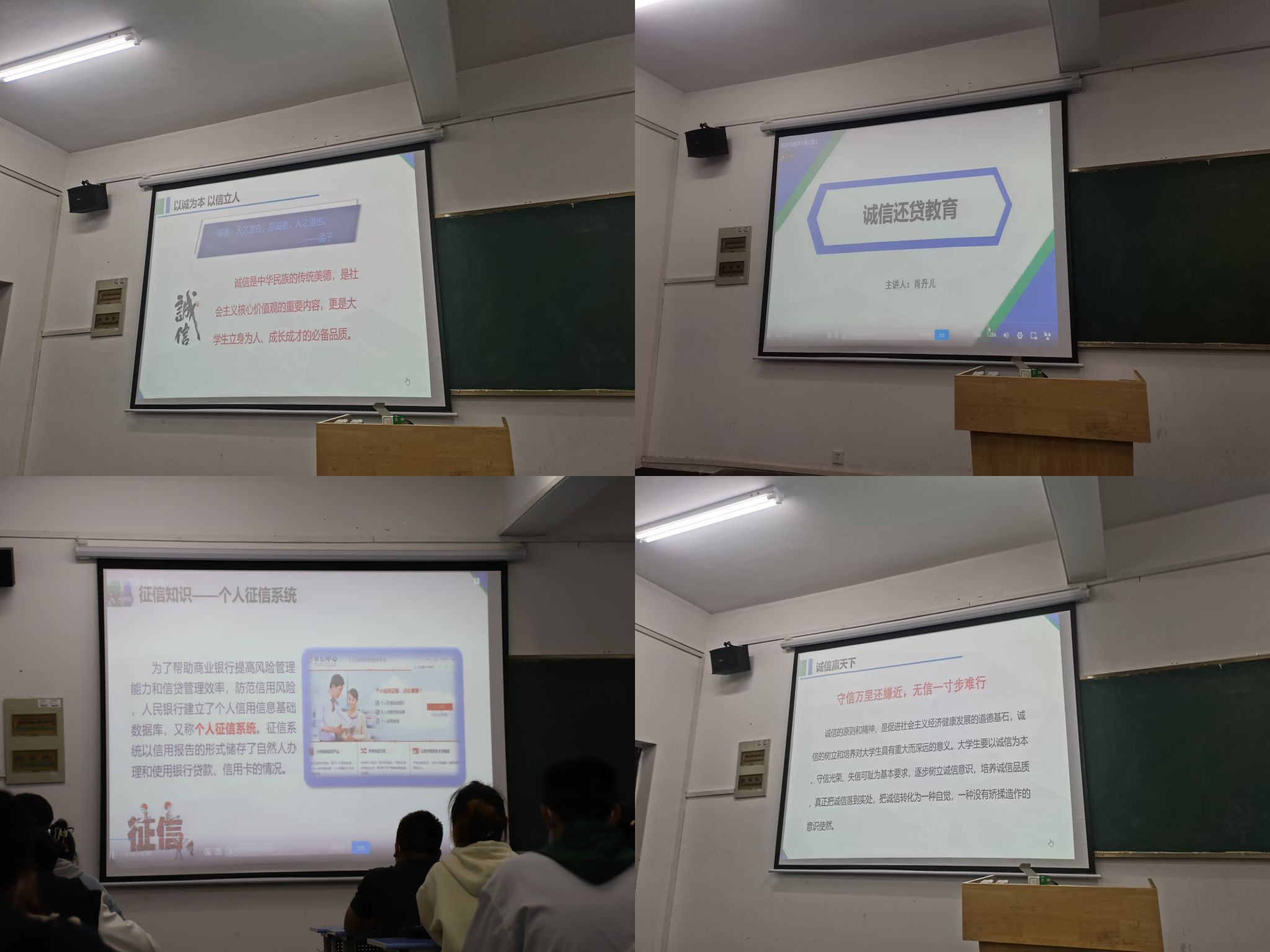 第二项议程同学们一起观看了生源地助学贷款诚信教育视频,其中详细讲解了关于生源地助学贷款的还款流程和注意事项,同时强调按时还款的重要性。希望同学们要以诚意为本,守信为荣,失信可耻为基本要求,逐步树立诚信意识,培养诚信品质。
