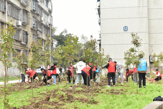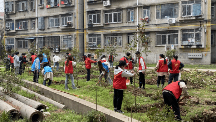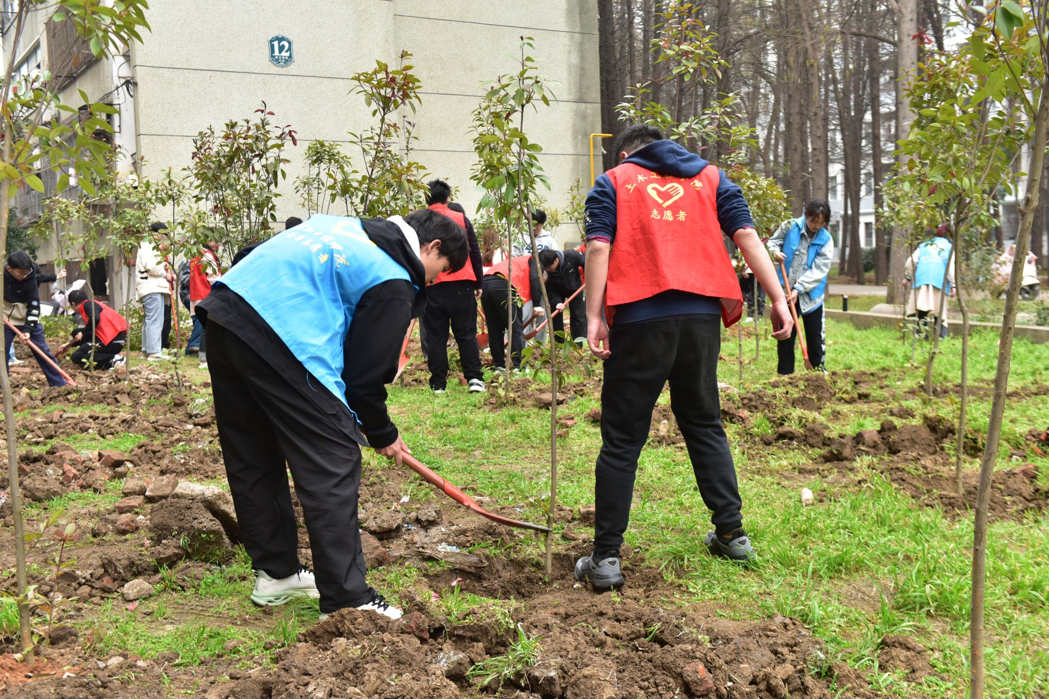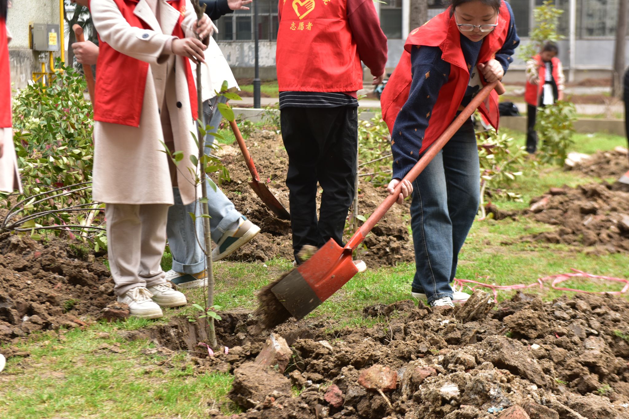 活动当天,阳光明媚,志愿者们热情高涨。大家认真聆听了园林师傅对植树的流程步骤和注意事项的讲解,随后三三两两结伴,分工合作、齐心协力,有的撸起袖子弯下腰、俯下身子拿起锹,有的扶植象征希望的树苗,挥锹铲土、培实树根、浇水育苗,他们热情洋溢,互相配合,干劲十足,忙碌的身影成为校园里一道亮丽风景。经过大家的共同努力,一排小树苗整齐排列,迎风而立,充满勃勃生机,为美丽的校园再添一片新绿。