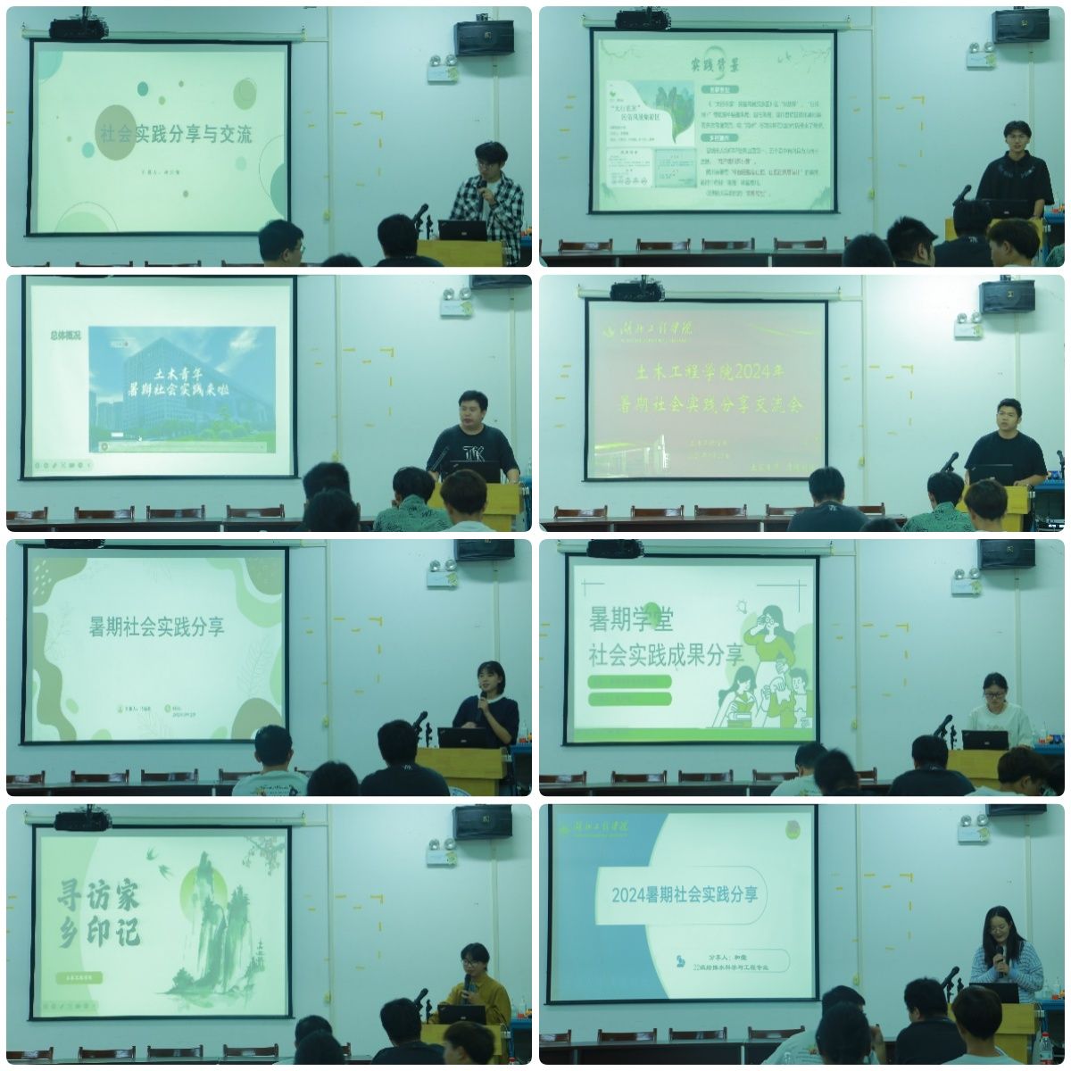在经验分享环节,各实践团队代表和返家乡实践代表分享了各自的实践经历和经验总结。通过PPT、视频等形式展示了他们在实践过程中深入农村、社区、企业等地开展的各类活动,涵盖科技创新、文化宣传、乡村振兴、公益服务、七彩假期等多个方面,充分展现了土木青年学子积极投身社会实践,用实际行动服务社会、服务人民的良好风貌。