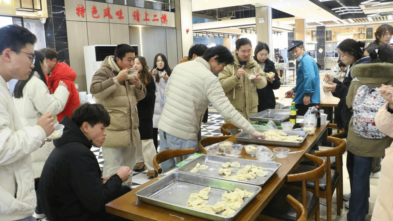 在包饺子过程中,大家相互交流,分享制作技巧和经验,不仅提升了动手能力,还增进了彼此之间的友谊。经过一段时间的动手劳动,在食堂和宿管阿姨的共同帮助下,一盘盘热气腾腾的饺子终于出炉,大家品尝着自己亲手制作的饺子,脸上洋溢着满足和幸福的笑容。