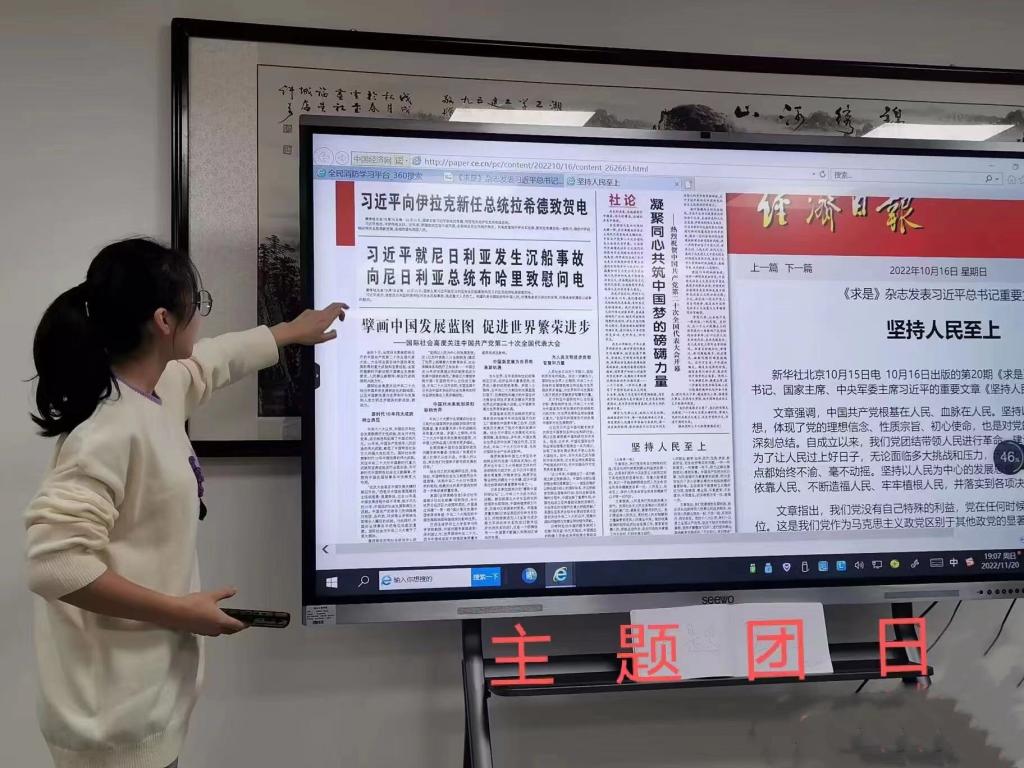 各团支部结合本次主题开展了专题学习交流会,深读细研党的二十大报告内容,学习习近平总书记在《求是》上发表的重要文章《坚持人民至上》和党章(修正案),并结合自身实际,畅谈感悟体会。同学们学习后感悟颇多,纷纷表示,作为生逢伟大时代的新青年,作为党和国家事业发展的生力军,必须坚定理想信念,练好内功、提升修养、增强本领,努力成为可堪大用、能担重任的栋梁之才,为实现第二个百年奋斗目标而努力奋斗,不辜负党和人民期望和重托!
