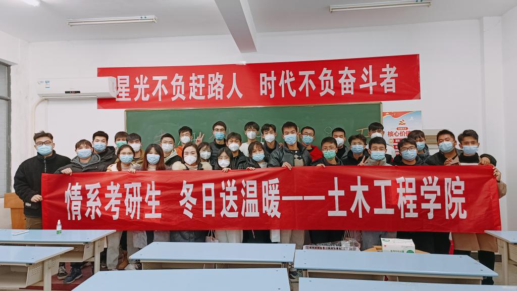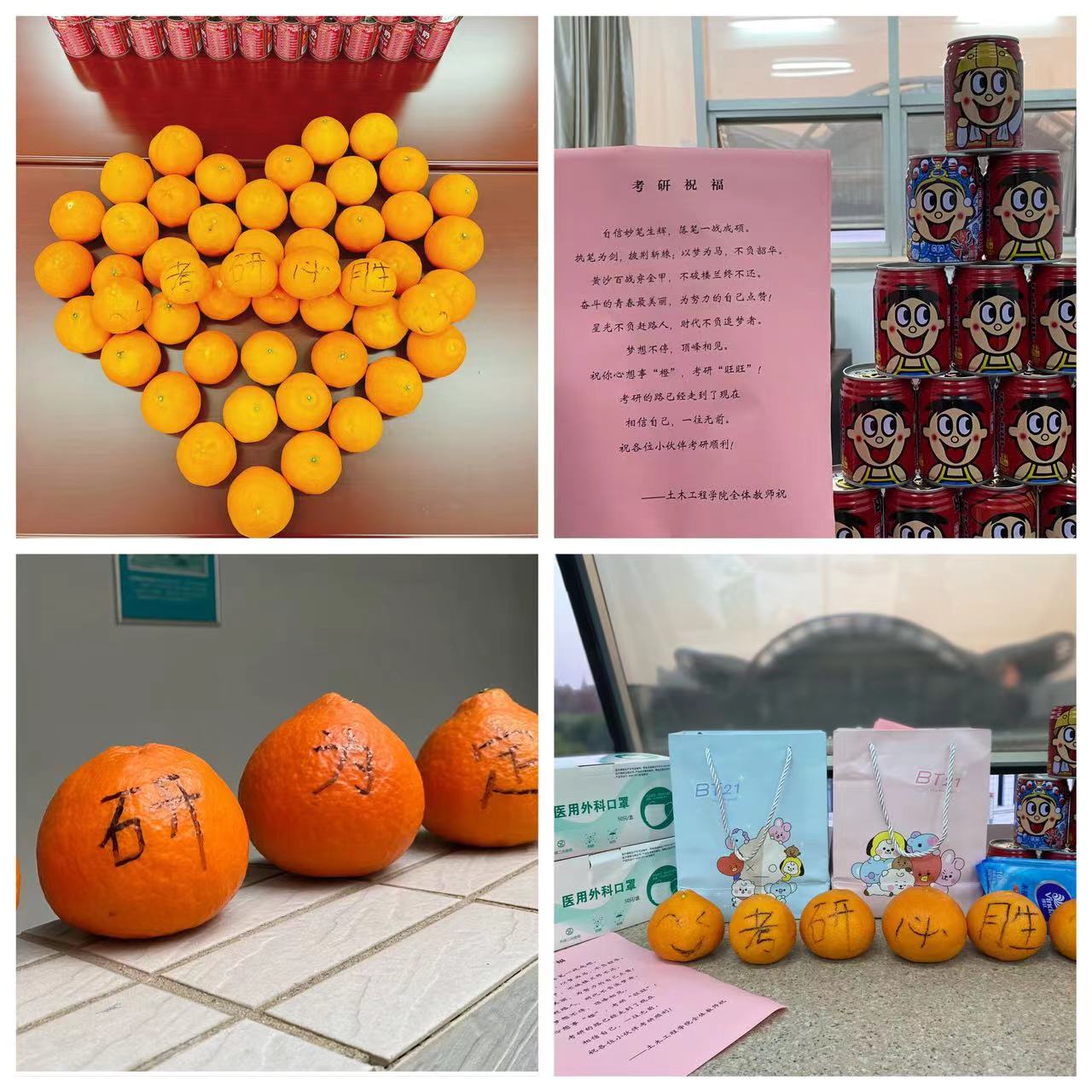 在此次“暖冬送温暖”行动中,学院为考研学子发放“考研暖心礼包”,写满考研祝福的祝福话语、“橙”意满满、“橙”风破浪、心想事“橙”的祝福橙子、口罩、湿纸巾等……每一份礼物都饱含土木学院师生的浓浓情义和深深祝福,让考研学子切实感受到了学院师生细致的关怀与殷切的期盼。活动期间,土木学院领导老师、毕业班班主任纷纷为正在冲刺的考研学子送上视频祝福,鼓励同学们们在备战考研期间注意防护、劳逸结合、科学备考、全力以赴、稳定心态,争取一战成硕。