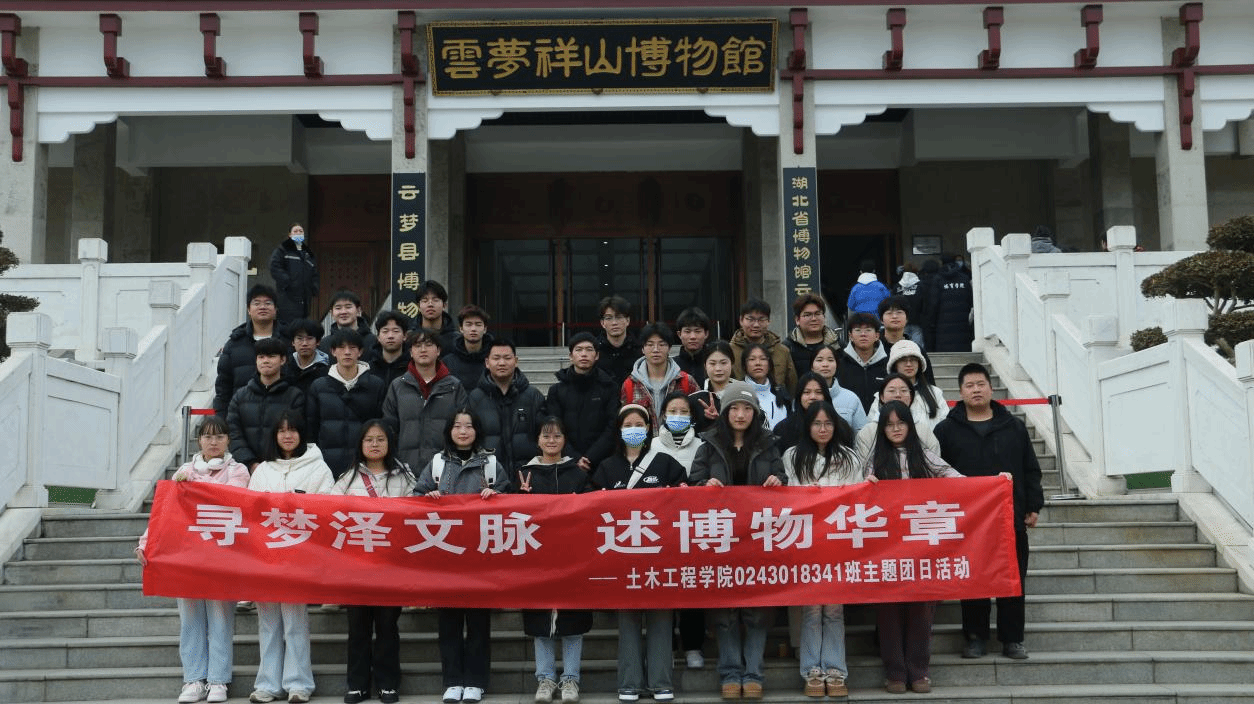 为深入学习贯彻习近平总书记考察湖北重要讲话精神, 进一步培育学生的家国情怀,感悟和领悟传统文化魅力,引导青年学生坚定理想信念,担当时代使命,12月26日,WilliamHill威廉赴云梦县博物馆开展“寻梦泽文脉 述博物华章”主题团日活动,学院0243018341班师生参加活动。