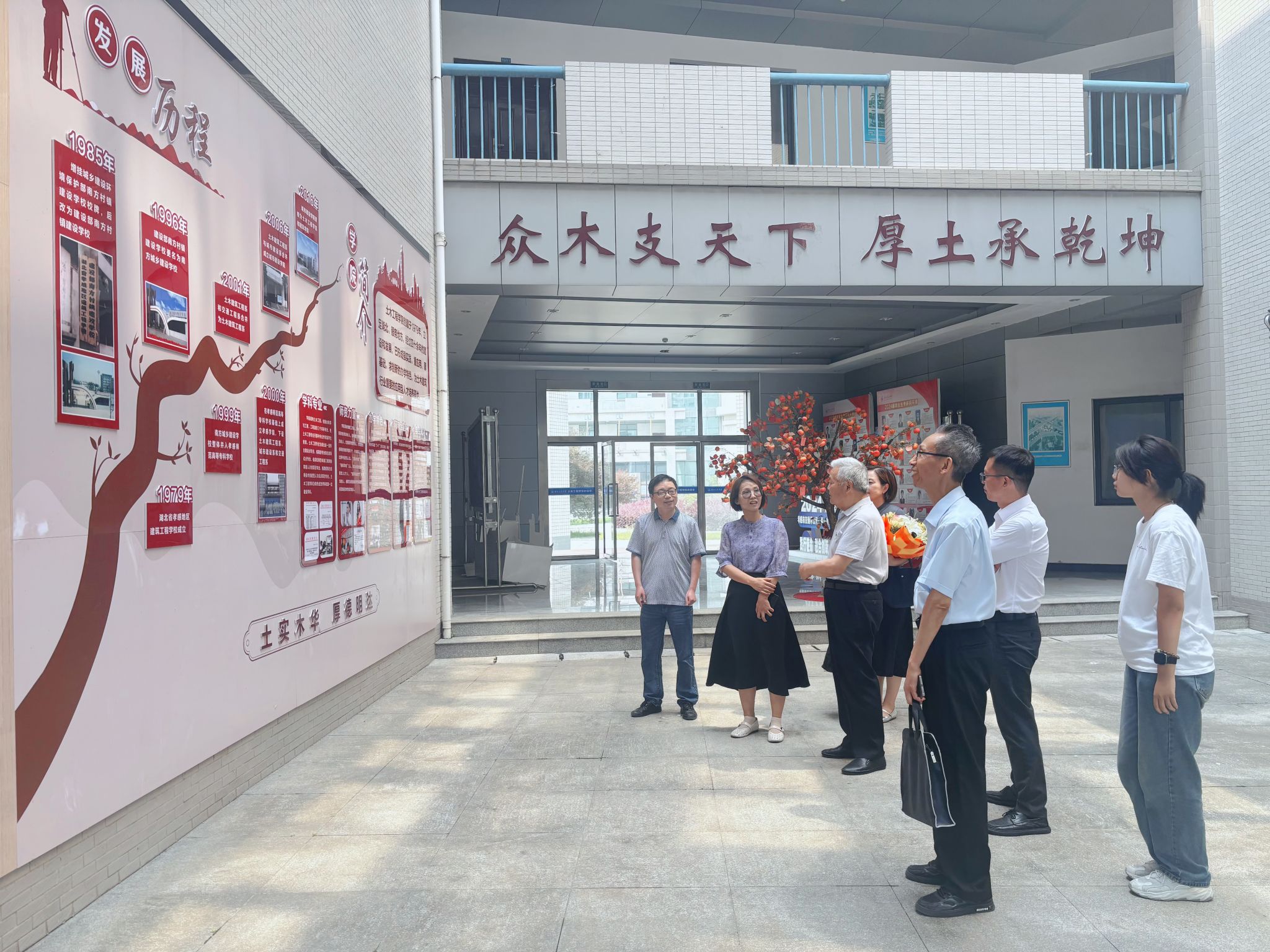 在学院领导班子的陪同下,袁焕平老领导首先参观了学院的土力学、水力学实验室,结构实验室等地。学院领导介绍了近年来实验室在设备更新、科研项目开展以及人才培养方面取得的成果,他频频点头肯定,鼓励大家善用先进设备,多出高质量科研成果,助力学科建设,为学院的学科建设添砖加瓦。