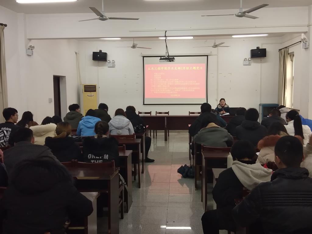 首先全体党员重温入党誓词、诵读党章、缴纳党费,随后学生党支部书记叶婵传达学习了省纪委十一届三次全会精神、全省组织部长会议暨干部教育培训工作会议精神、全省地厅级主要领导干部坚持底线思维着力防范化解重大风险专题研讨班精神、全省宣传部长工作会议暨高校党的建设工作会议以及全省教育系统全面履行“三项职责”工作会议精神,她要求大家务必加强理论武装,认真学习,入脑入心,做到知行合一,自觉听党话,跟党走。