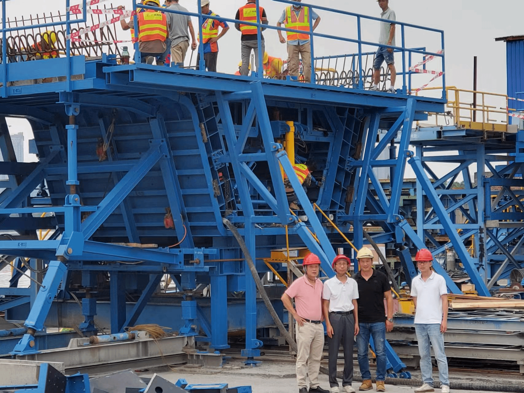 (番禺校友朱金林(96131)为领导老师们介绍香港预应力桥梁制作项目)