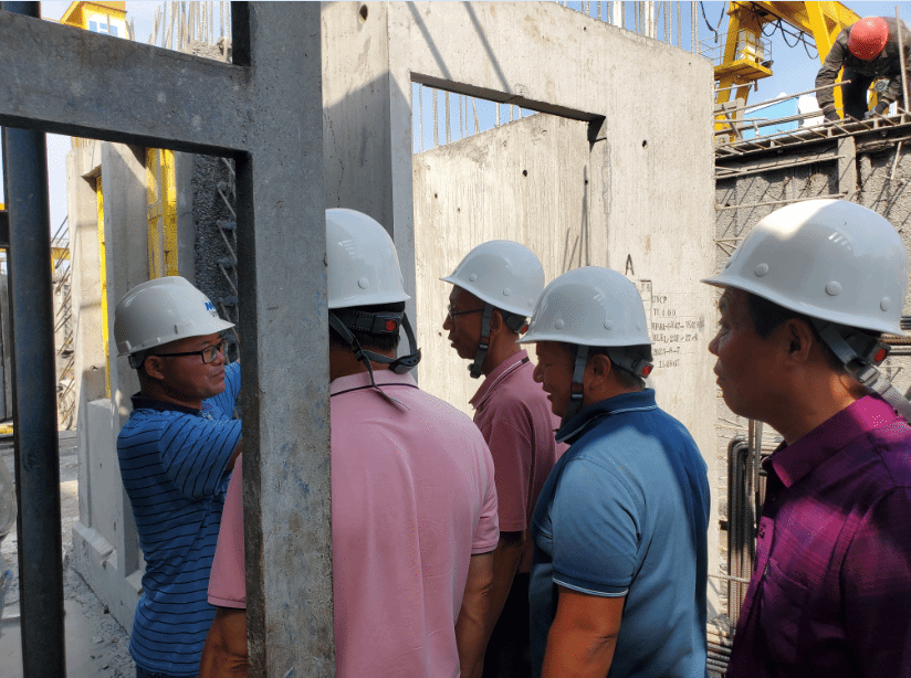 (东莞校友吴硕(9514)为领导老师讲解香港订单预应力混凝土制品)