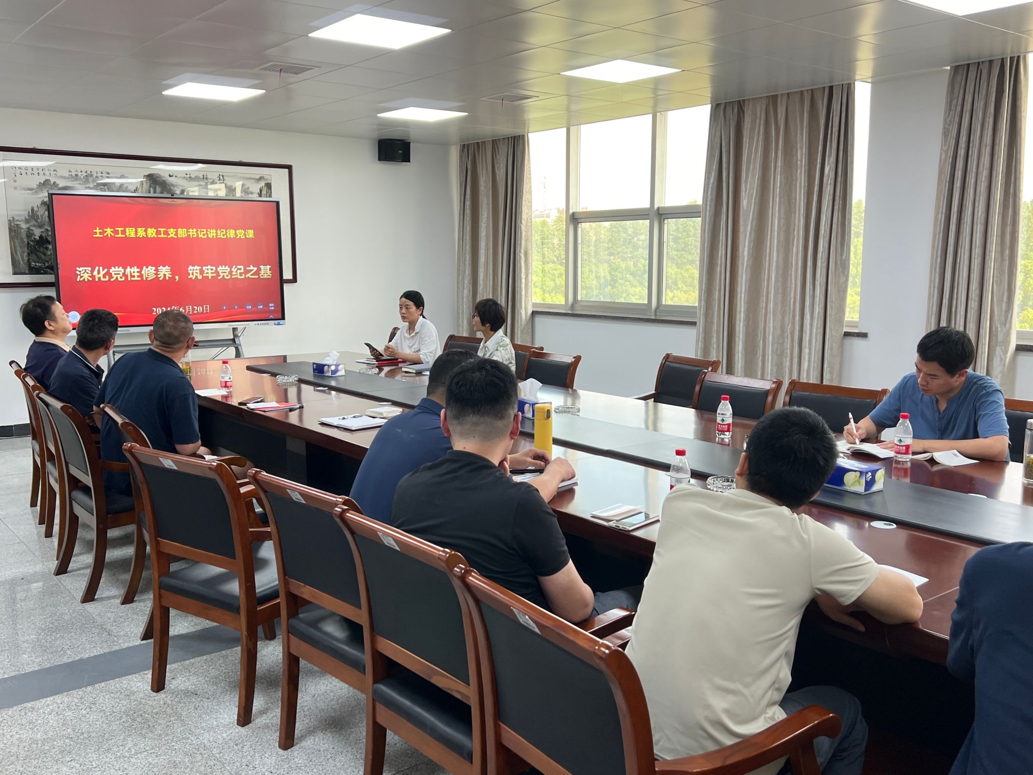 此次主题党日活动各系支部书记还开展了“深化党性修养,筑牢党纪之基”讲纪律党课活动,所有党员老师一起学习了党性修养的重要性、加强党性修养的具体措施、党纪的基本内容与要求、筑牢党纪之基的实践路径以及新时代高校教师职业行为十项准则。