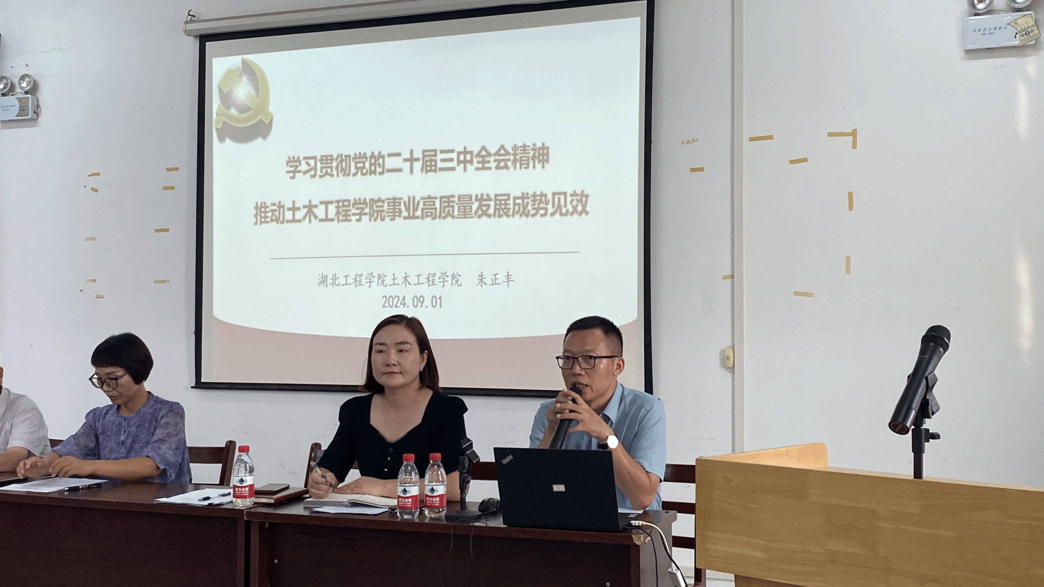 为贯彻落实党中央、省委和学校党委最新决策部署,抓好学习贯彻党的二十届三中全会精神,9月1日下午,WilliamHill威廉在天工楼504举行二十届三中全会精神宣讲报告会。学院党委书记朱正丰作《学习贯彻党的二十届三中全会精神 推动WilliamHill威廉事业高质量发展成势见效》专题宣讲,学院全体教职工参加宣讲会。