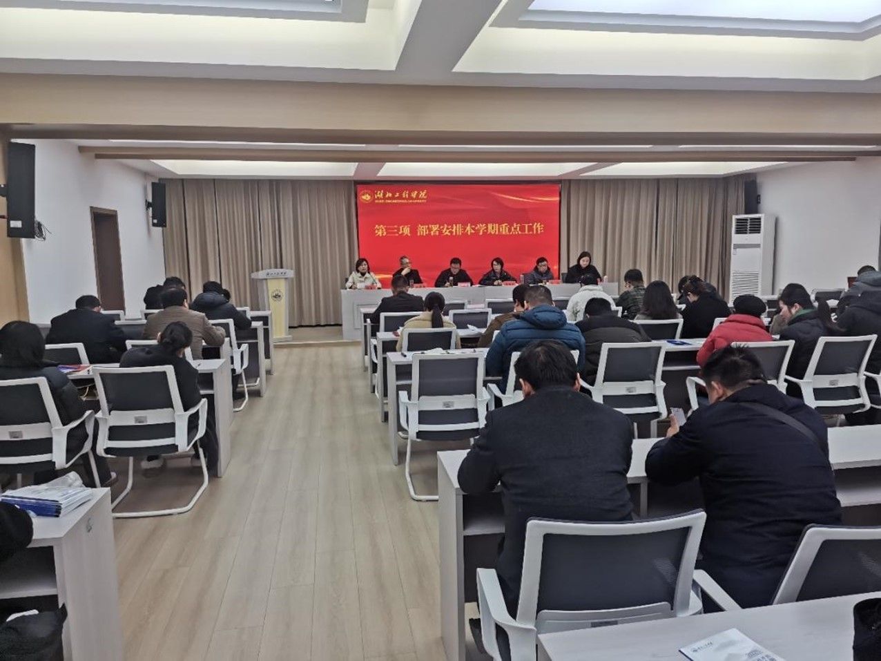 副院长郭波、刘伟静、韩燕华,党委副书记魏佩,分别从审核评估工作、科研与社会服务、专业认证、学科竞赛、学生管理及就业等方面对前期工作情况进行了通报,并就开学初工作及本学期重点工作依次进行了详细安排和部署。