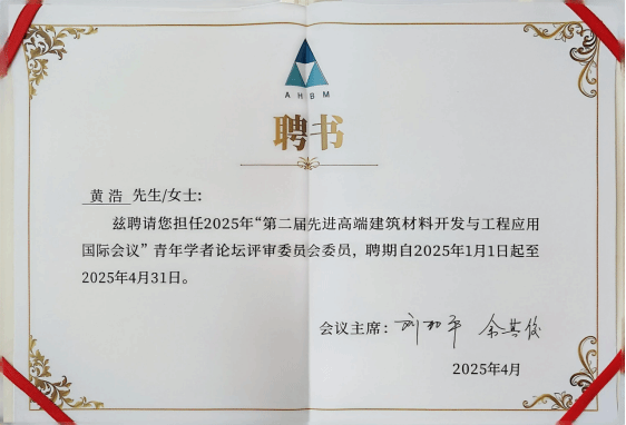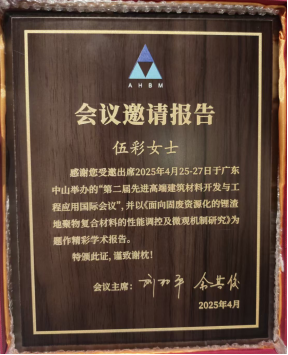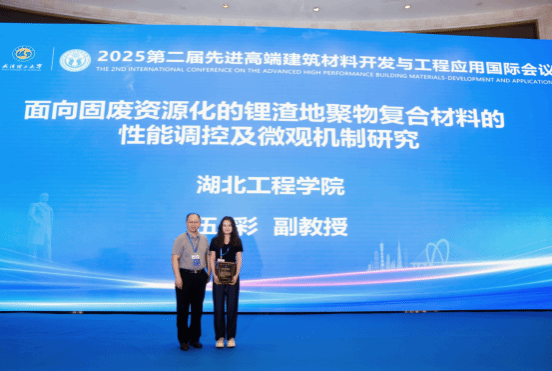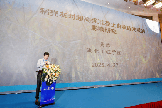 会议为期两天,会议期间我院路亚妮院长主持了第五分会场“先进材料保障基础设施改造余城市更新”的相关会议议题,黄浩博士则作为青年学者论坛的评委对青年报告内容进行了相关点评和评分。同时,伍彩和黄浩博士还分别做了题为《面向固废资源化的锂渣低聚物复合材料的性能调控及微观机制研究》和《稻壳灰对超高强混凝土自收缩发展的影响研究》的主题报告,并与参会嘉宾就相关课题进行了探讨。