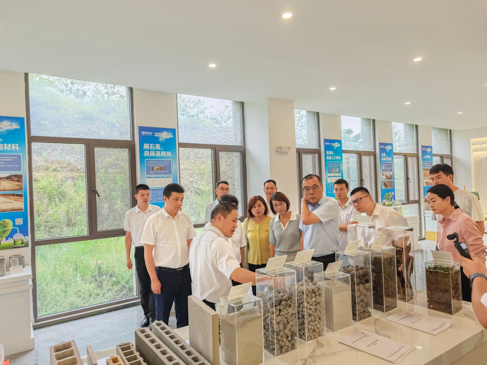 调研组首先参观了大悟聚海环境科技有限公司生产基地,深入了解了该公司在磷石膏固废材料多场景资源化利用方面的研发产品和应用成果。随后,在公司会议室召开了调研座谈会。期间,院长路亚妮代表威廉中国官方与湖北聚海环境科技有限公司签署了产学研合作协议,为双方后续深度合作奠定基础。