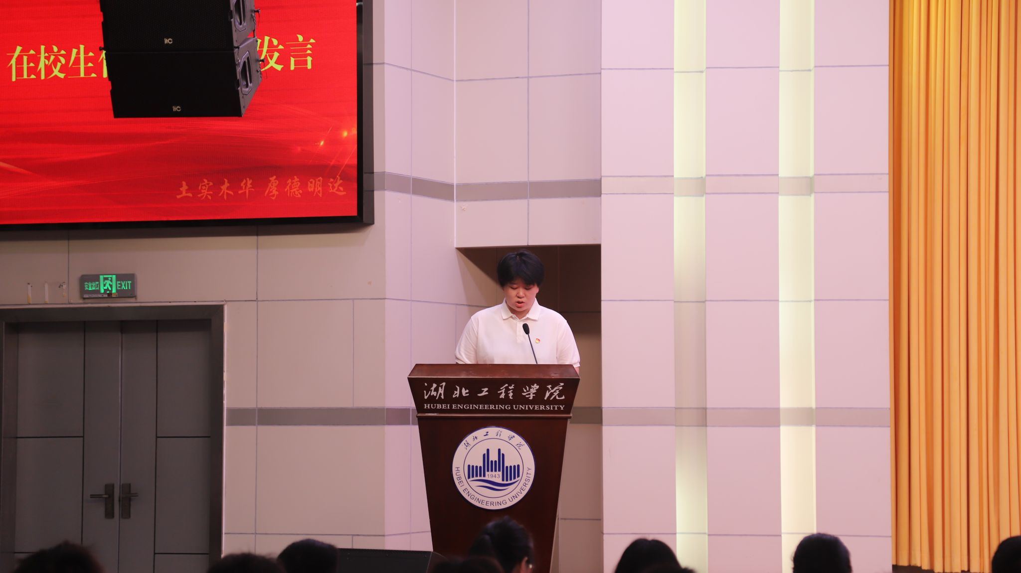 在校生代表23341班朱芷萱同学分享了自己的大学三年的专业学习和学生工作经历,她勉励大家以“土实”之心扎根专业,以“木华”之志拓展可能,以“厚德”之怀滋养品格,以“明达”之智照亮前路,最终成长为有理想、有本领、有担当的土木人,用双手“建造”属于自己的精彩人生!