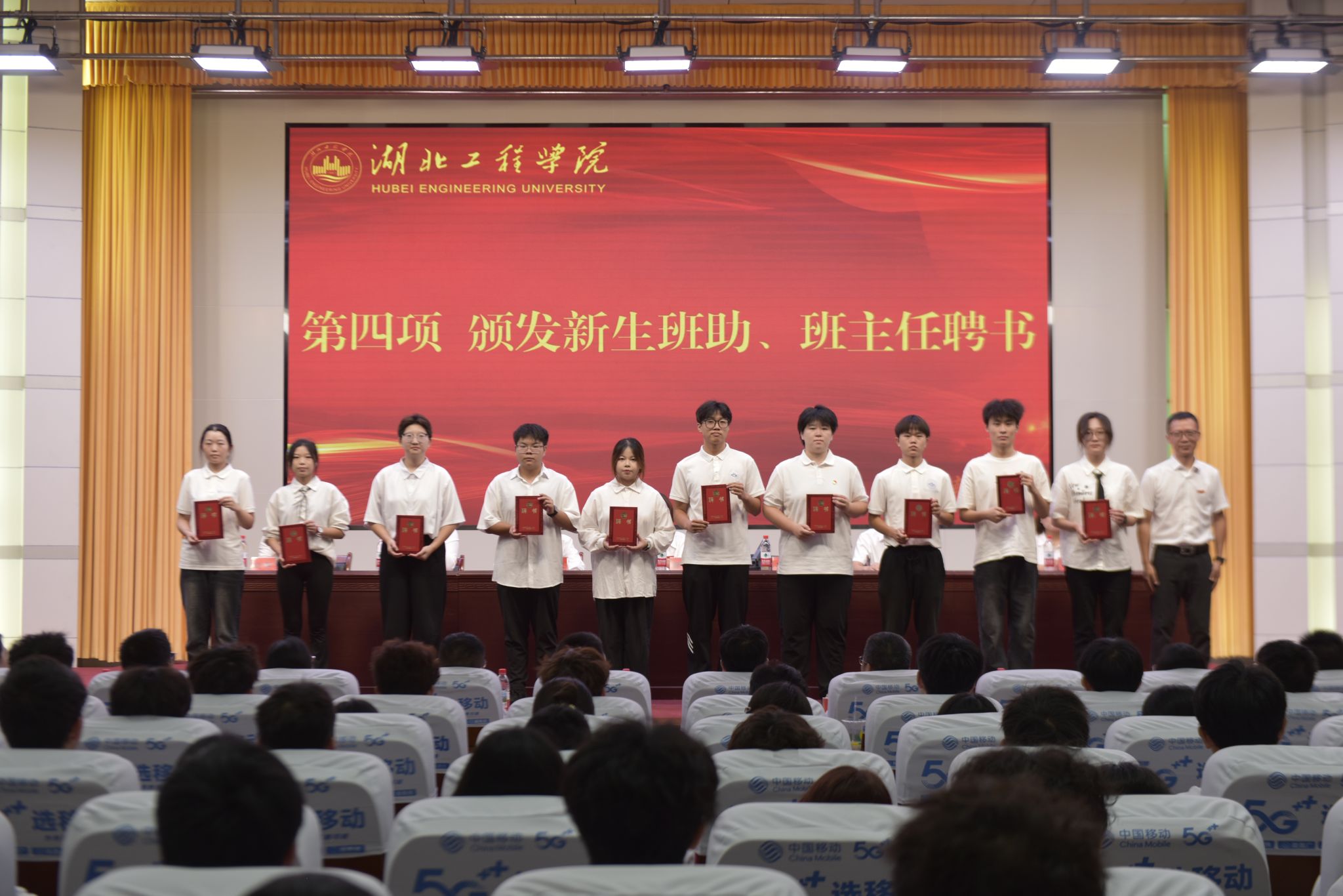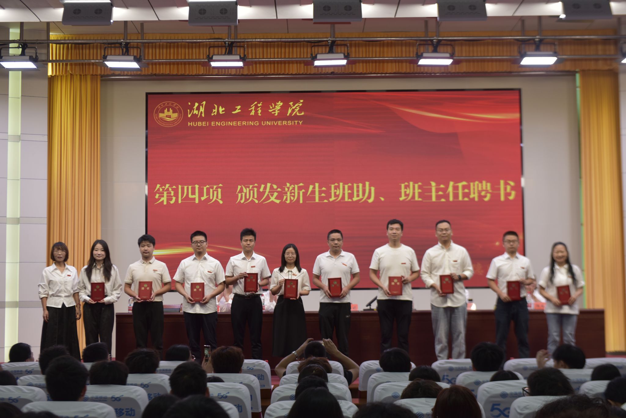 学院党委书记朱正丰代表学院为新生班主任助理颁发聘书,院长路亚妮为新生班主任颁发聘书。