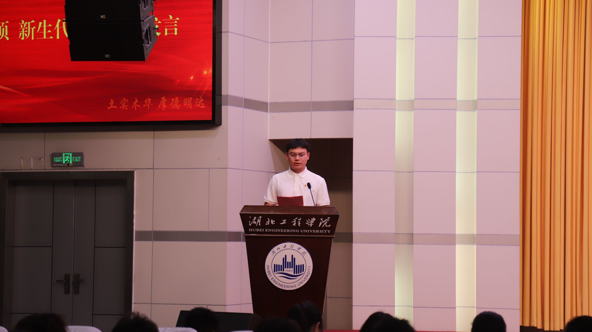新生代表袁志强与大家分享了对土木工程专业的理解,并以一名新时代土木人的身份郑重承诺:他将以敬畏之心对待专业,以热忱之心投入学习,严守学术规范,注重实践求真,绝不辜负时代的嘱托与师长的期望,努力成长为有担当、有本领的新时代土木人!