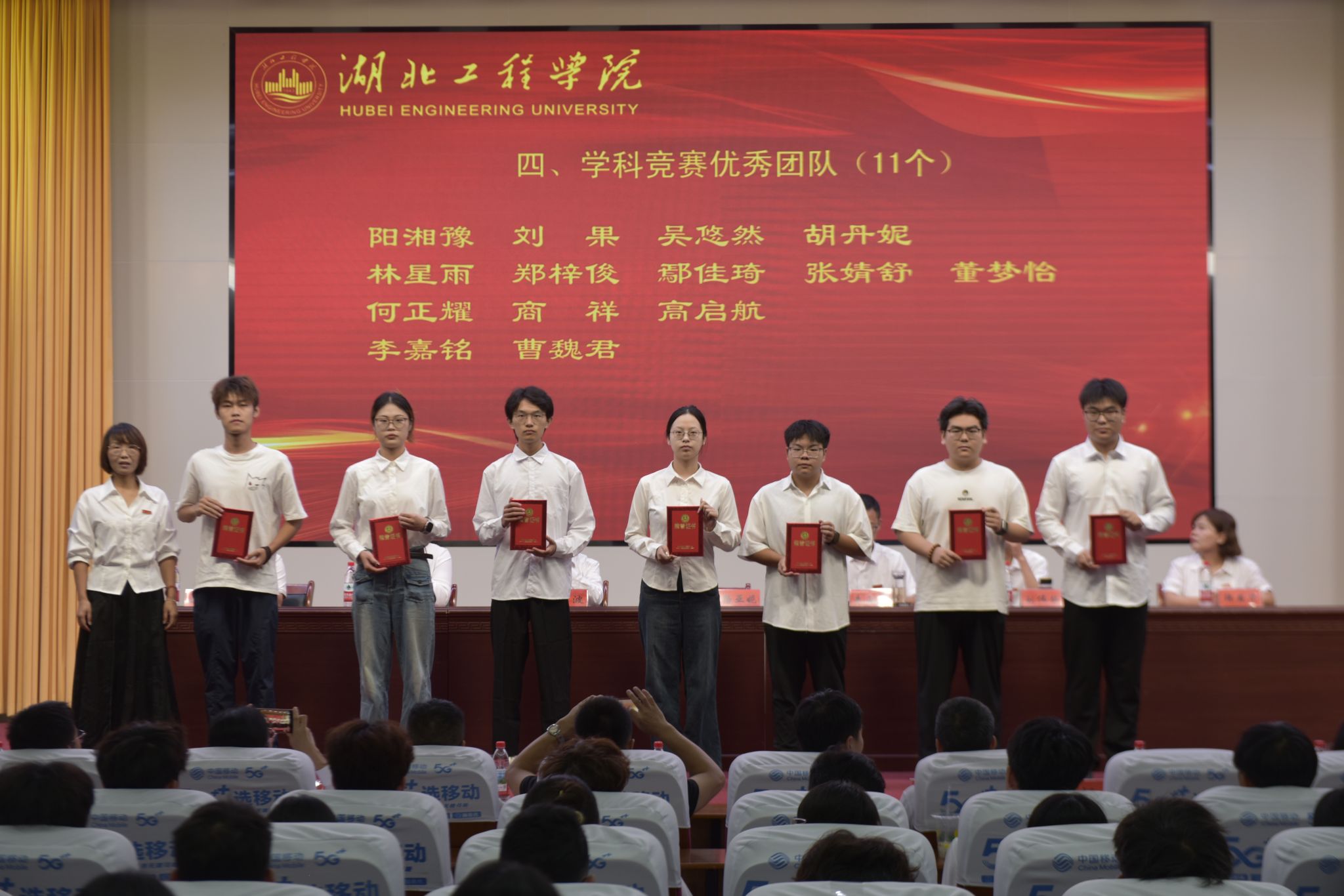 院党委副书记魏佩宣读《关于表彰WilliamHill威廉2024-2025学年度先进集体和优秀个人的决定》,副院长韩燕华、副书记魏佩、副院长刘伟静、副院长郭波和院长路亚妮、代表学院分别为获得社会实践先进个人代表、优秀学生干部代表、学习标兵代表、学科竞赛优秀团队代表颁奖。