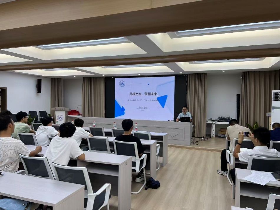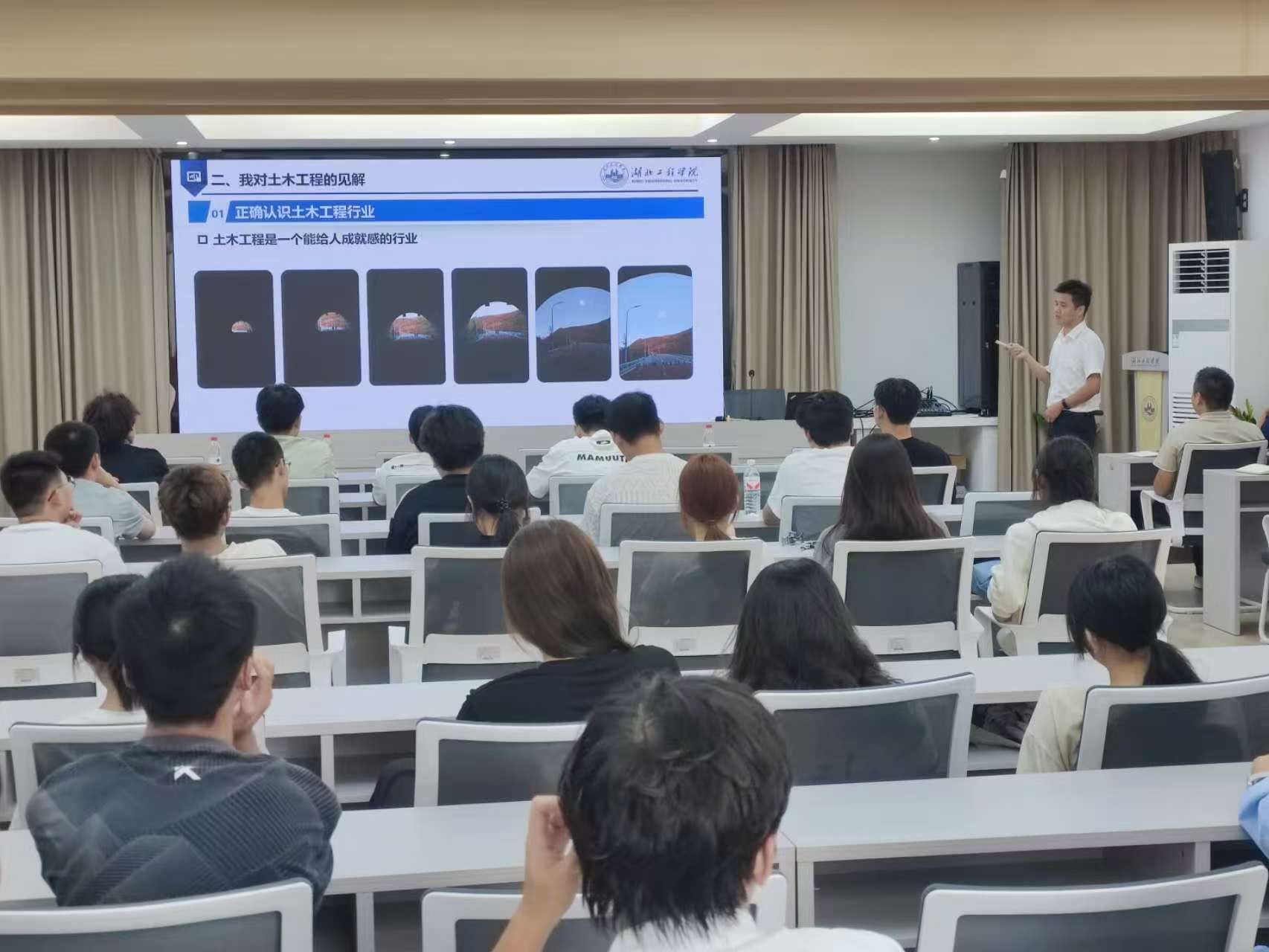 院学生会权益部部长、BIM协会会长冯路毅鼓励新生们要积极参加各种社团活动和实践项目,不断提升自己的综合素质和能力,为未来的发展打下坚实的基础。学长冯路毅同学以《从筑梦到智造 你的大学无限可能》为题,与新生们分享了自己的大学生活经验和成长感悟。