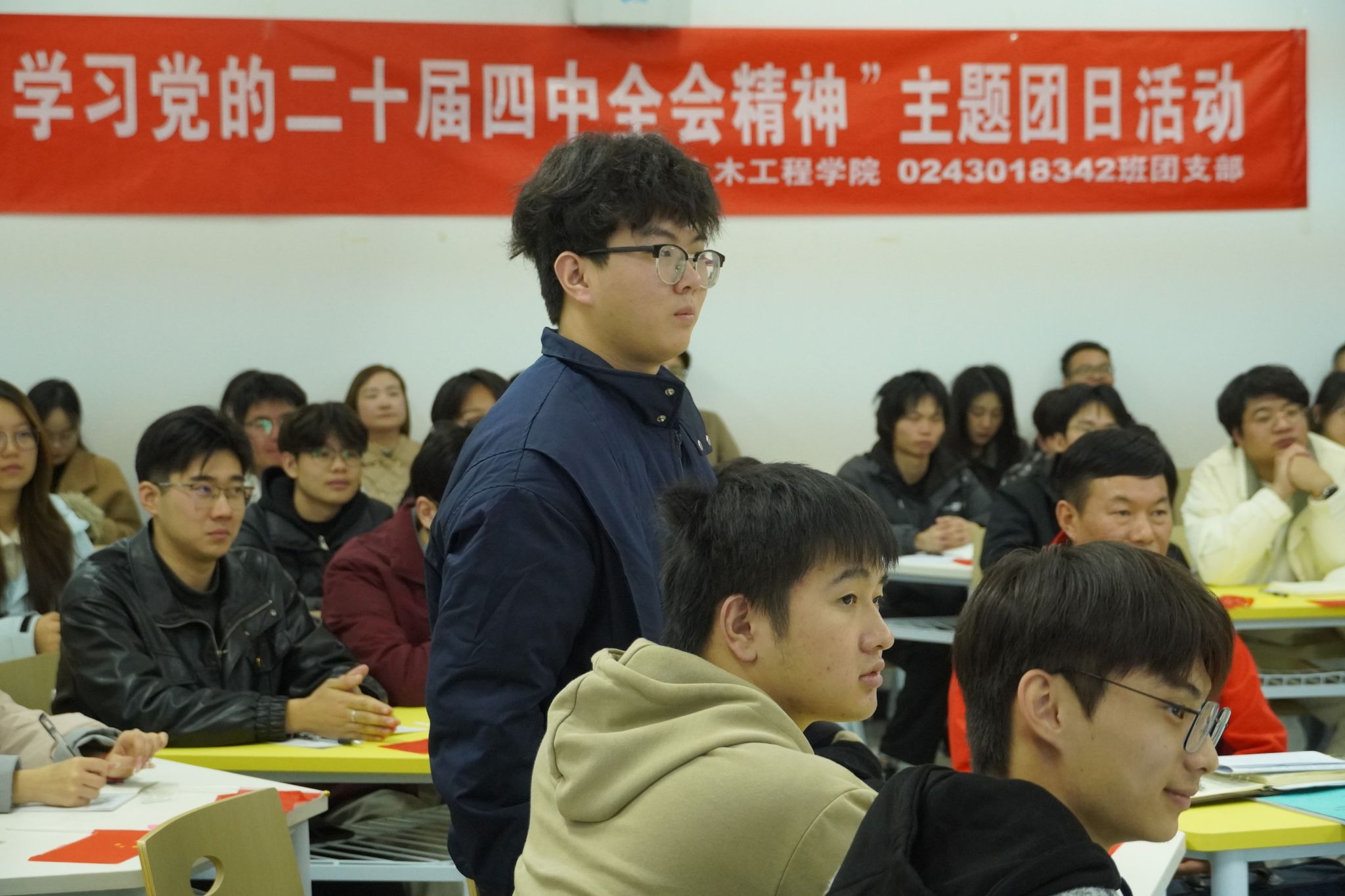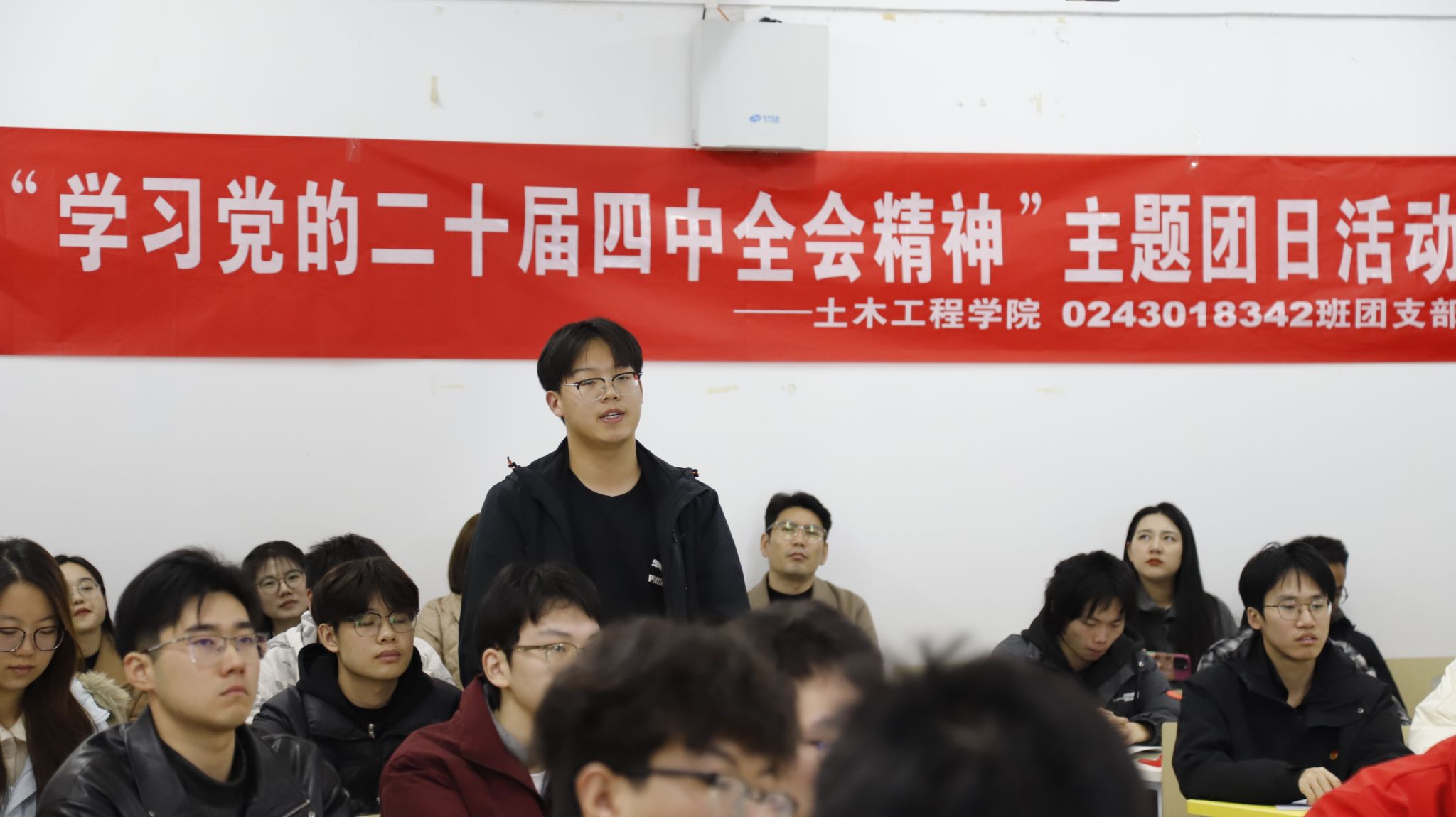 活动在激昂的团歌中启幕。本次主题团日活动主持人周伊纯同学通过一段精彩的短片带领大家系统学习了党的二十届四中全会精神和“十五五”规划的战略部署与深刻内涵。互动交流环节中,同学们围绕“我的专业与国家蓝图”积极思考,主动发言将个人成长融入“十五五”发展大局之中。