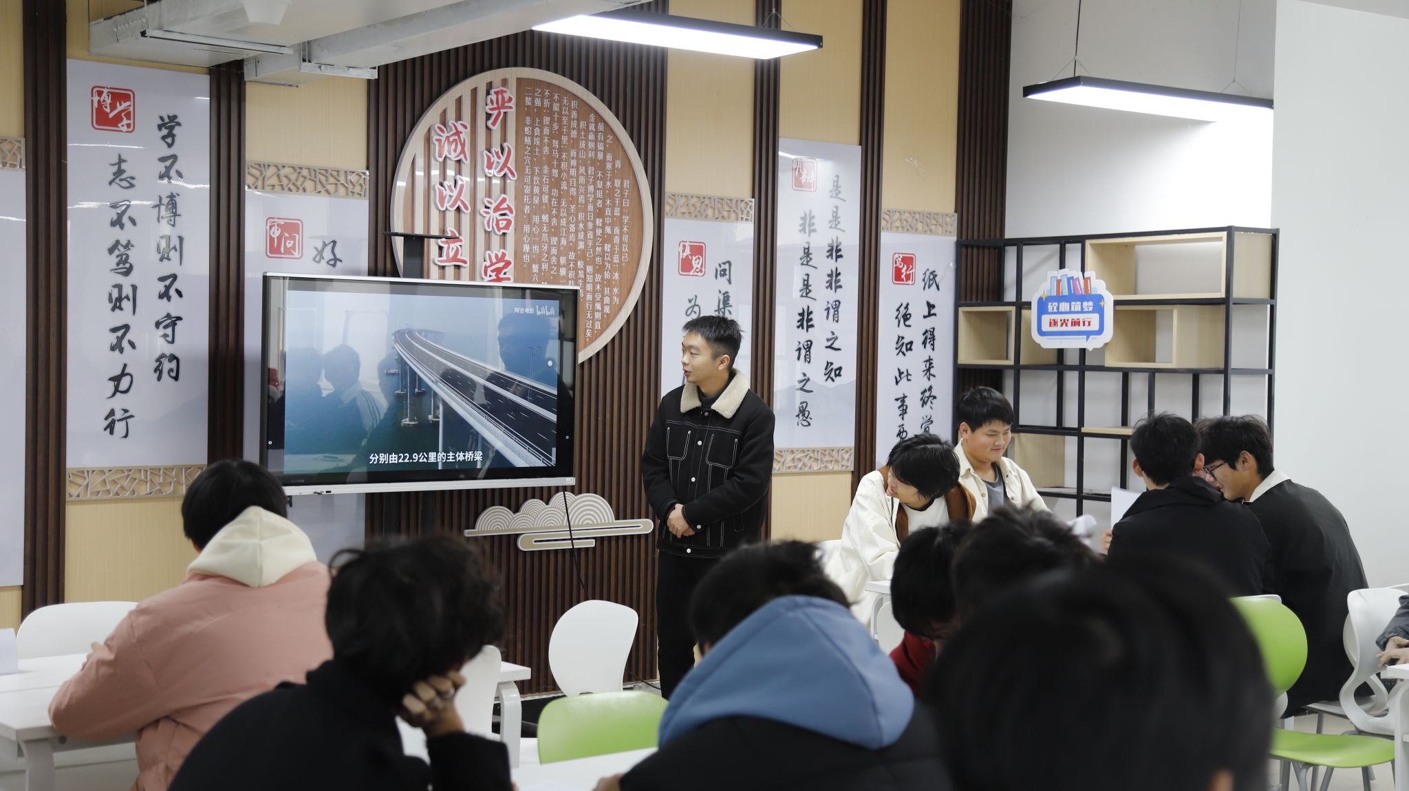 在“砼学共进观伟业”环节,同学们集体观看了《港珠澳大桥》工程纪录片。纪录片中展现的宏伟工程、前沿技术与工程师们攻坚克难、精益求精的匠心精神,深深触动了在场每一位同学。观看结束后,大家围绕纪录片内容展开热烈讨论,结合自身专业学习,畅谈对工程伦理、技术创新和职业理想的理解,进一步激发了投身祖国建设事业的专业热情与使命担当。
