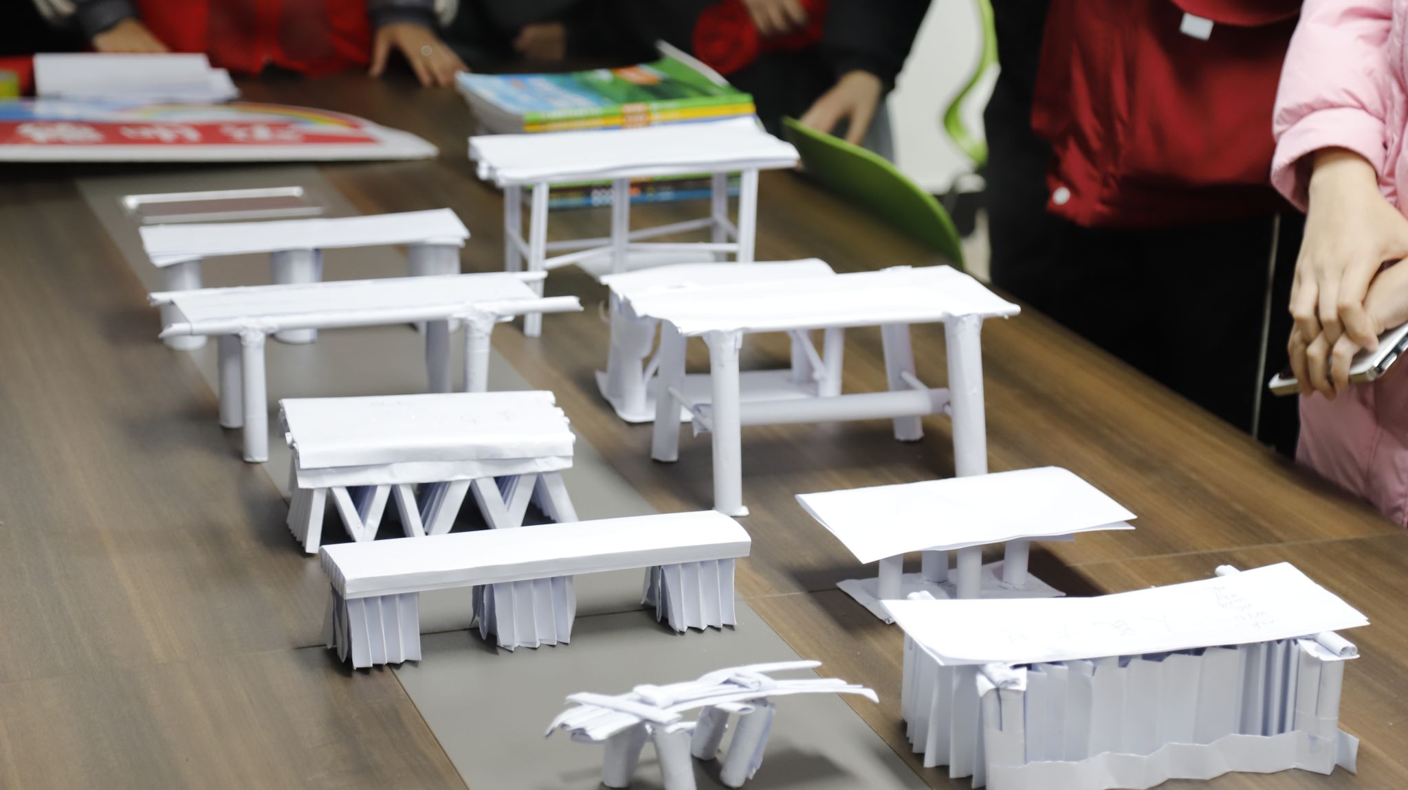 紧随其后的“砼行致远赛匠心”环节,将活动气氛推向高潮。受到纪录片的鼓舞,各寝室成员化身“桥梁工程师”,以纸张和胶水为材料,在限定时间内协作完成纸桥的设计与制作。