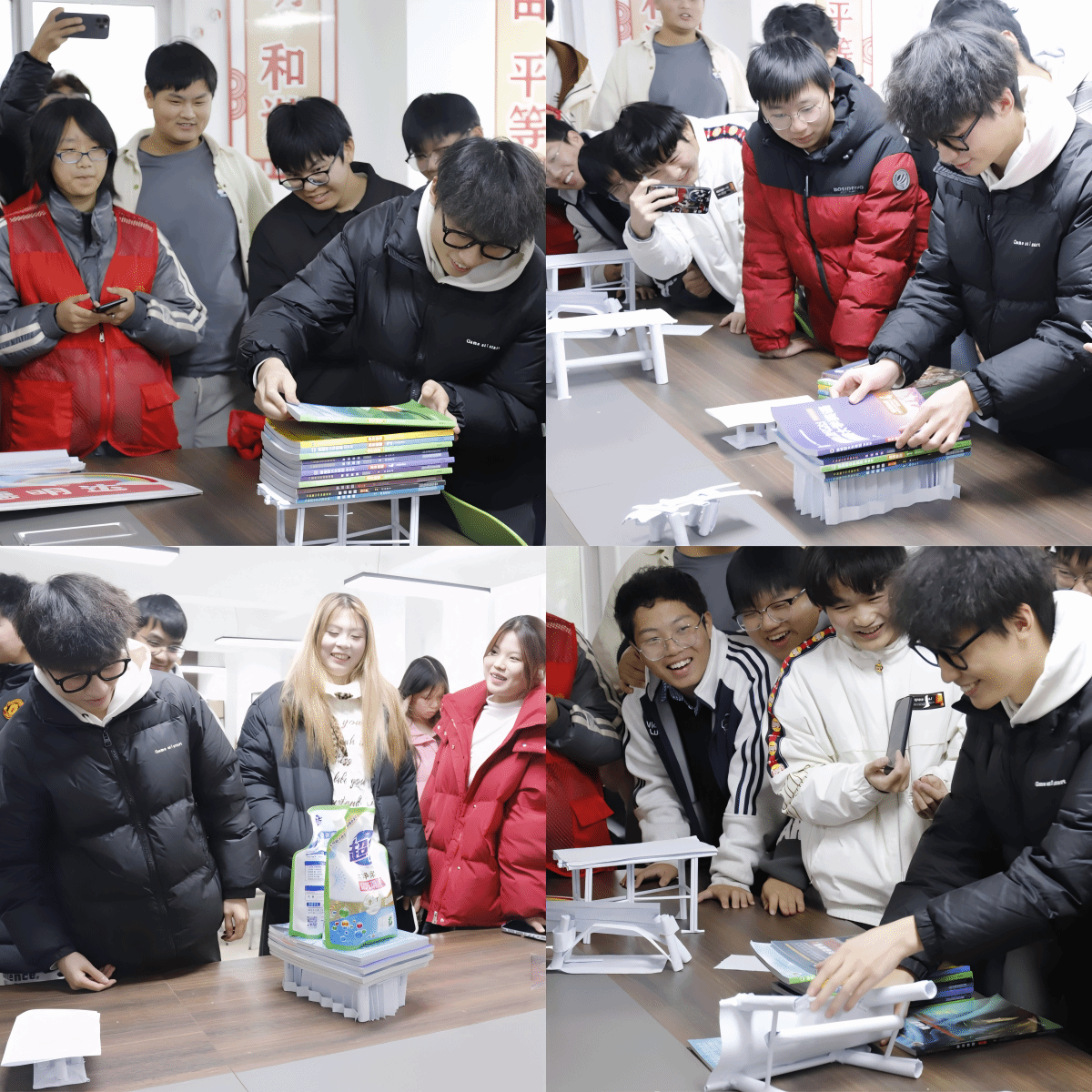 比赛现场,同学们巧妙运用力学原理,优化结构设计,力求在轻质与承重之间找到最佳平衡点。最终,一座座形态各异、结构精巧的纸桥依次接受承重测试,每一次成功的加载都伴随着热烈的掌声与欢呼。这场别开生面的工程挑战赛,不仅是对专业知识的趣味实践,更是对团队协作、创新思维和工匠精神的一次生动锤炼。
