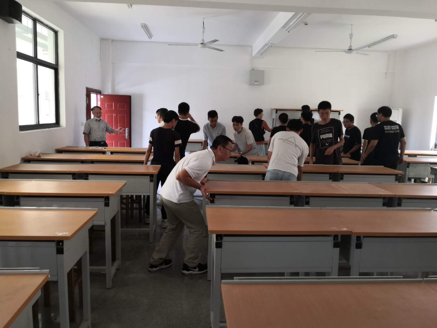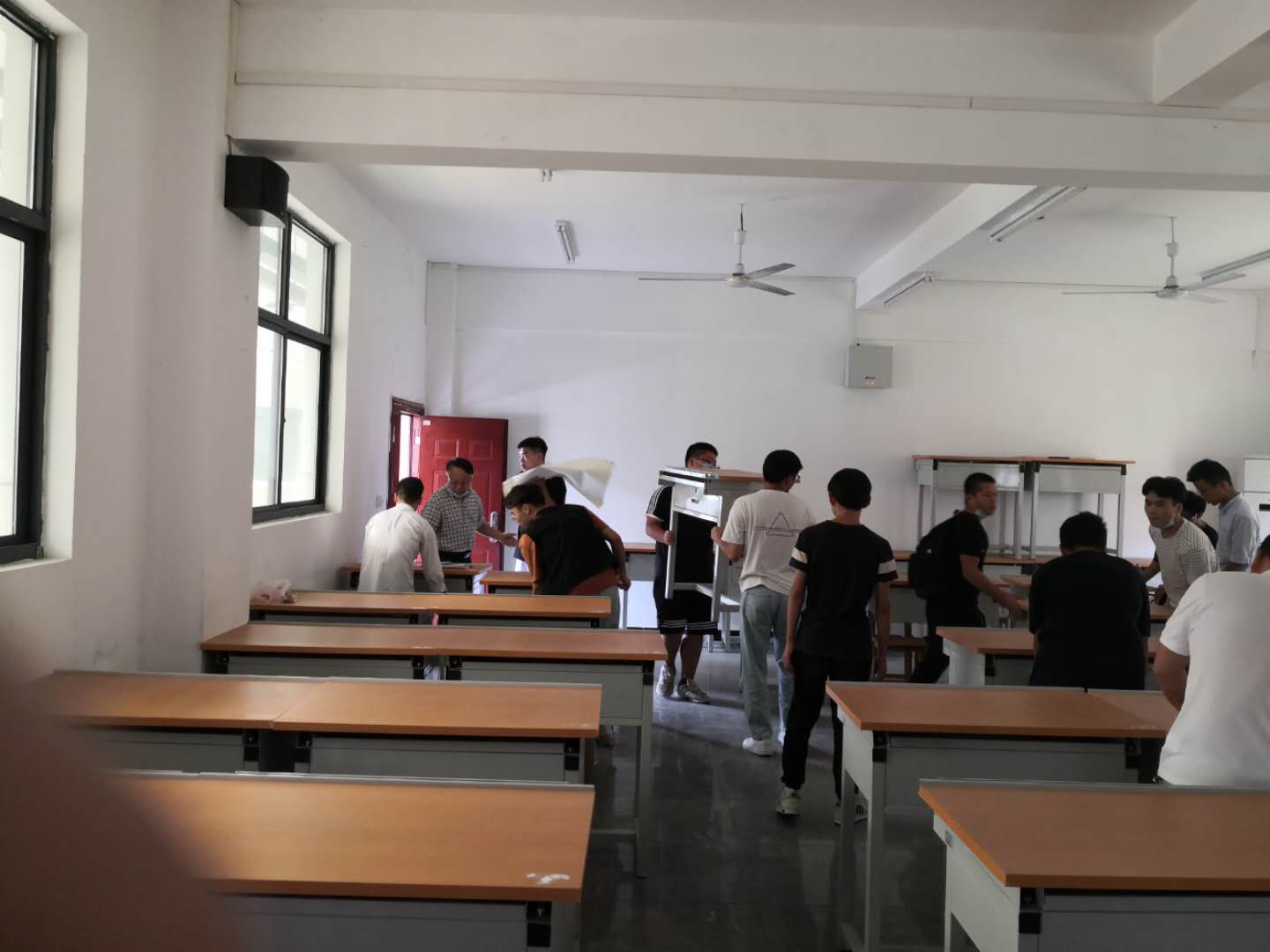 下午三点,李院长带领二十余人的队伍便开始了行动,一齐涌进了WilliamHill威廉教学楼。大家齐心协力,把原先的教室课桌重新进行了排列布置,对教室进行了整理打扫。一下午时间,天工楼及天成楼教室被整理得焕然一新。看到整齐的课桌、干净的地板、明亮的教室,志愿者学生纷纷表示,看到新的课桌椅布置,有一种更想走进教室学习的感觉。