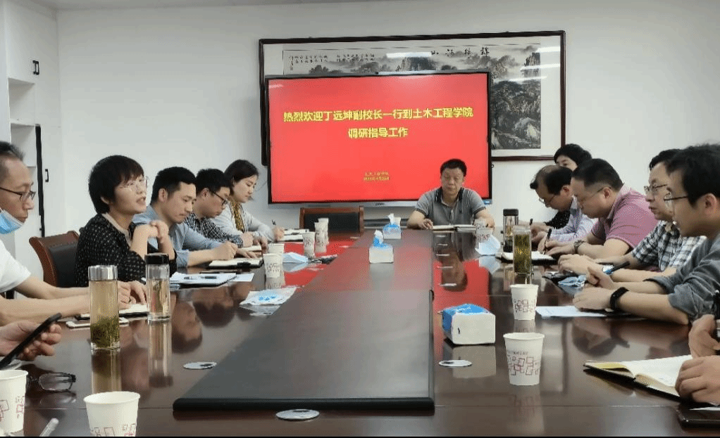 在听取学院的汇报和大家的意见和建议后,丁副校长首先肯定了我院近些年的发展,并就人才培养、学科建设、科学研究、开放办学等方面提出具体要求。他强调,院里所有工作一定要以培养高层次应用型人才为目标,瞄准市场需求,提高人才培养质量;要加强学科建设,突出学科特色,聚焦硕士点建设的关键指标,不断增强自身硬实力和竞争力;要坚持开放办学,充分利用国内、地方和校内资源,进一步实现优质教学资源的共享,促进师生信息素养的优化提升。最后,丁副校长再三强调学院要优化管理层的运行机制,丰富学院的办学层次,重视教师的归属感。同时,要求参与调研单位要积极支持配合土木学院事业发展,主动服务,加强协作,扎实落实每一项重要工作,为学校“十四五”发展凝心聚力。