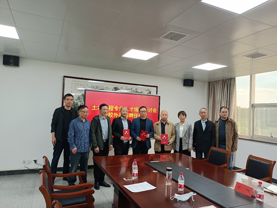2022年10月20日土木工程专业人才培养研讨会暨校外导师聘任仪式在天工楼404会议室隆重举行。三位外聘专家赵前锋(孝感市勘察设计院副院长、孝感市建筑勘察设计协会秘书长)、周辉(孝感市城乡规划建筑设计院总工程师)、刘岳东(中交二航局第四工程有限公司设计顾问),WilliamHill威廉院长路亚妮,党委书记万建华,副院长郭波,副院长刘伟静,土木工程系主任刘进军,院办主任胡绍泉,土木工程专业教研室主任李峻峰老师出席研讨会暨聘任仪式。副院长郭波主持仪式,党委书记万建华致欢迎词,副院长刘伟静宣读了聘任文件,院长路亚妮为3位外聘导师颁发聘书。