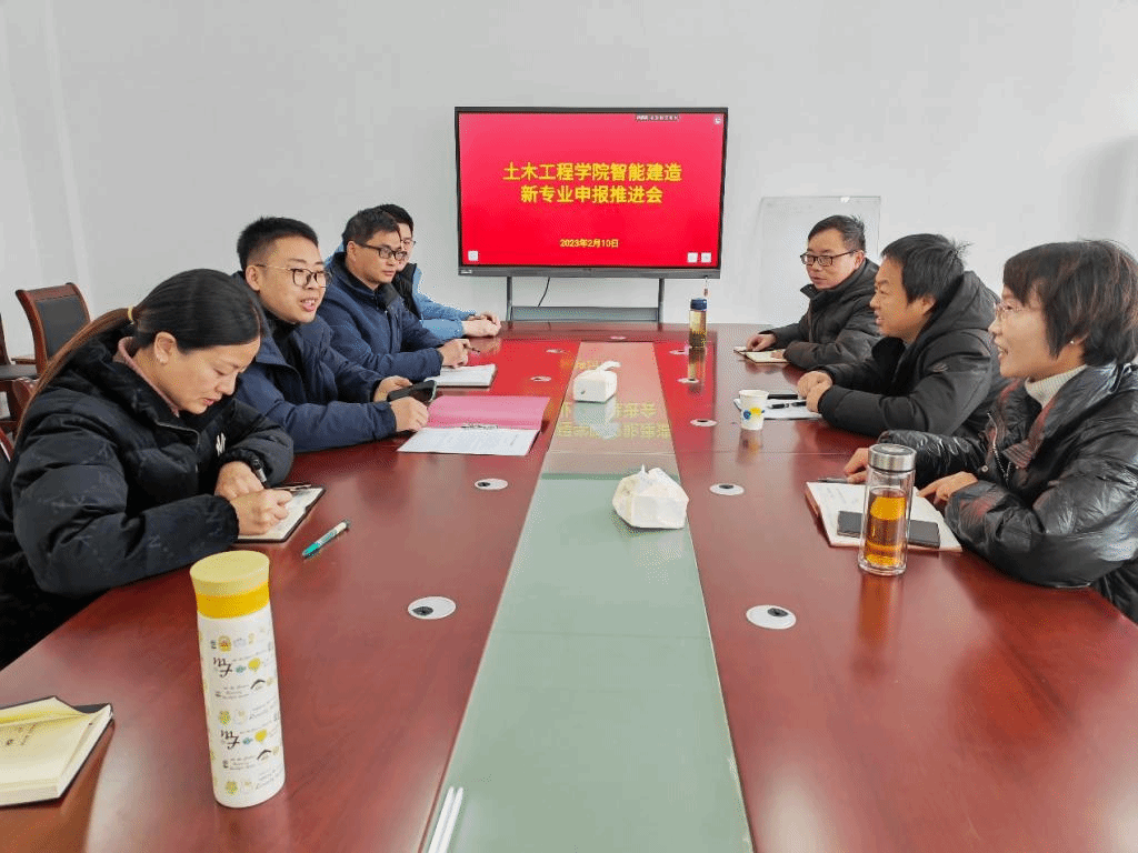 本次会议旨在解决新专业申报相关问题,并对申报工作进行部署。李青老师就智能建造专业的背景、申报现状、申报相关政策文件、申报书组成、申报工作计划等前期工作进行了汇报。徐院长对申报书填写进行细致讲解,提到申报工作重点难点是人才培养方案的制定,要结合好习近平总书记关于高等教育的重要论述,在专业增设理由上应结合当前国家、省市地方对智能建造相关产业配套支持政策,以产业为导向,以对接产业作为人才培养的重要参考。其他各位老师在会上参加了讨论交流,提出了各自意见。