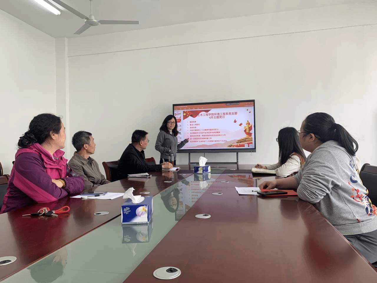 在主题党日活动上,全体党员依次进行缴纳党费、重温入党誓词和诵读党章活动,接着由各系支部书记带领大家学习党的二十大重要讲话精神,强调要全面准确学习领会党的二十大精神,通过各种形式学习宣传贯彻党的二十大精神。