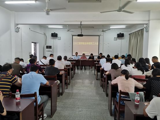接着,副院长郭波就上半年教学工作、暑期生产实习、专业建设、课程建设、专业申报、新学期教学检查等情况做了详细的报告,并传达学习了学校师德师风建设工作相关精神及要求,领学了习近平总书记关于师德师风建设的相关论述以及《新时代高校教师职业行为十项准则》等文件。副院长刘伟静就科研及社会服务工作、实验室建设与安全、专业认证等工作做了汇报;副书记魏佩就学生党建和思想教育、招生就业、日常管理、主题教育、80年校庆等工作进行了汇报。然后,三位分管领导对开学初工作及本学期重点工作进行了详细的安排与部署。